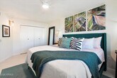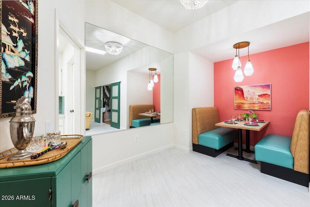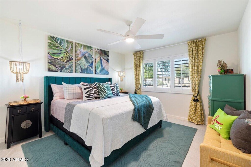 Cheerful Escape is a bright,fully furnished 1 bed/1 bath single-level condo in Sun City with a fun,Palm Springs-inspired vibe--an inviting escape from bland or colder climates. Updated with tile flooring,quartz counters,stainless appliances,and remodeled bath. Spacious layout with high ceilings,skylights,and spacious living area. Dedicated office/sitting room (one step down) with statement wall and patio access. King bedroom with ample storage. Private patio with seating and electric grill. Oversized 1-car garage with washer/dryer and storage. All utilities and WIFI included. Optional access to Sun City Rec Centers (fee applies). No vaping or smoking inside or out. No pets. 4 mo lease minimum. One tenant must be 55+ per HOA. Agent/Owner. $2000/mo Jan,Feb,March. $1800/mo low. MLS ID 7020381
