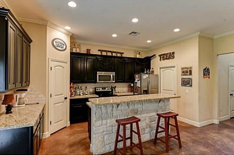 PRE-LEASING 2026-2027 ! WHO NEEDS A BIG BACK YARD ?!!?!!!!! Large fenced in back yard with very large bedrooms! Location doesn't get better than this! 4 bedroom, 4.5 bathroom home offers a wide open living area! Boasts soaring 10' ceilings and all the upgrades: granites, crown molding, interior stone accents, oil-rubbed bronze fixtures throughout, walk-in pantry, very large washer dryer room. French doors lead from the living room out to the covered patio and backyard. Owner Pays lawn care, utilities are not included. CALL US NOW 979-484-ROOM or