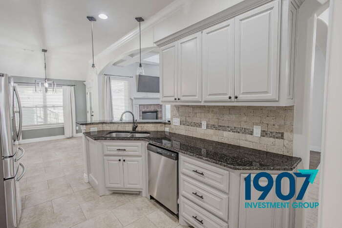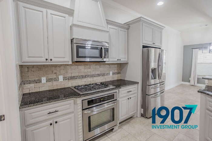 Luxurious 5-Bedroom Executive Home with Gourmet Kitchen and Storm Shelter in Moore! Welcome to this stunning 2,351 sq ft residence located at 1013 Samantha Ln in Moore. This expansive property offers premium living with four bedrooms and three bathrooms, featuring high-end architectural details and a spacious, open layout perfect for modern families. Step inside to a grand living room showcasing beautiful hardwood-look flooring, a double-coffered ceiling with elegant molding, and a striking brick fireplace with a custom mantel. The open-concept design flows seamlessly into the dining and kitchen areas, illuminated by modern light fixtures and abundant natural light. The gourmet kitchen is a chef’s dream, featuring custom white cabinetry, premium granite countertops, and a designer tile backsplash. It comes fully equipped with high-end stainless steel appliances, including a gas range, wall oven, and built-in microwave, along with a spacious breakfast bar for casual dining. The primary suite is a true retreat, offering a massive en-suite bathroom with a double vanity, a dedicated jetted soaking tub, and a separate walk-in shower with custom tile work. The additional bedrooms are generously sized with plush carpeting, while a flexible loft or bonus room provides extra living space. Outside, the home boasts professional landscaping and a fully fenced backyard complete with a large covered patio and a playground set. For added peace of mind, the three-car garage includes a built-in storm shelter. Located in a premier Moore community, this exceptional home is ready for you! Key Features: *2,351 sq ft *5 Bedrooms / 2 Bathrooms *Gourmet kitchen with granite countertops and gas range *Living room with coffered ceilings and brick fireplace *Primary suite with jetted tub and custom tiled shower *Three-car garage with underground storm shelter *Large fenced backyard with covered patio and playground Resident Benefits Package Our homes offer the Second Nature Resident Benefits Package, designed to make your rental experience easier and more convenient. This includes: *Monthly HVAC filter delivery *$1M identity protection for all adult leaseholders *24/7 maintenance reporting *Credit-building with on-time rent payments *Resident rewards program *Easy online payments and portal access Breakdown of Charges *Leasing Fee: One-time $100 fee due at move-in. *Pet Policy: No pet deposit required. Pet rent is $25/month per pet with a $100 pet initiation fee due at move-in. *Utilities: Utilities remain in the owner's name. Bills are applied directly to the tenant ledger with a $5 utility processing fee per tenant, per utility. *Utility Setup: A $75 one-time utility initiation fee is due at move-in. Contact us today to schedule a showing! This property allows self guided viewing without an appointment. Contact for details.