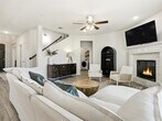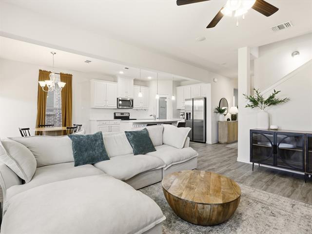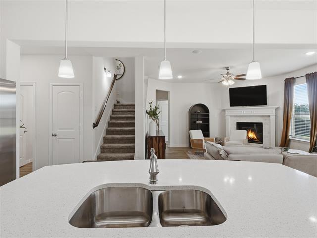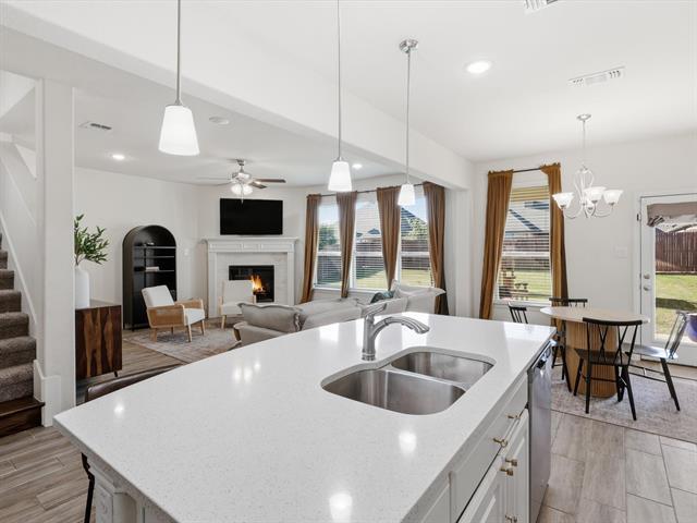 Discover this stunning brick and stone beauty just outside Burleson in Joshua — a home that immediately feels special the moment you arrive. Once the model home for Lillian Custom Homes, this Coralbell floor plan offers designer touches, warm natural light, and thoughtful details throughout. Step inside to an inviting open-concept living and kitchen area perfect for hosting friends and family. The cozy fireplace creates the ideal atmosphere for relaxing evenings, while the dedicated study gives you a quiet space to work, plan, or create. A formal dining room brings everyone together for memorable meals, and the upstairs flex space is ready for game nights, movie marathons, or a play area. The owner’s suite is your personal retreat, featuring a spa-like walk-in shower, dual sinks, and a spacious walk-in closet. Upstairs, two bedrooms share a convenient bath, and a separate bedroom with its own private bathroom is perfect for guests or a growing family. This home truly offers space, comfort, and style for every season of life.