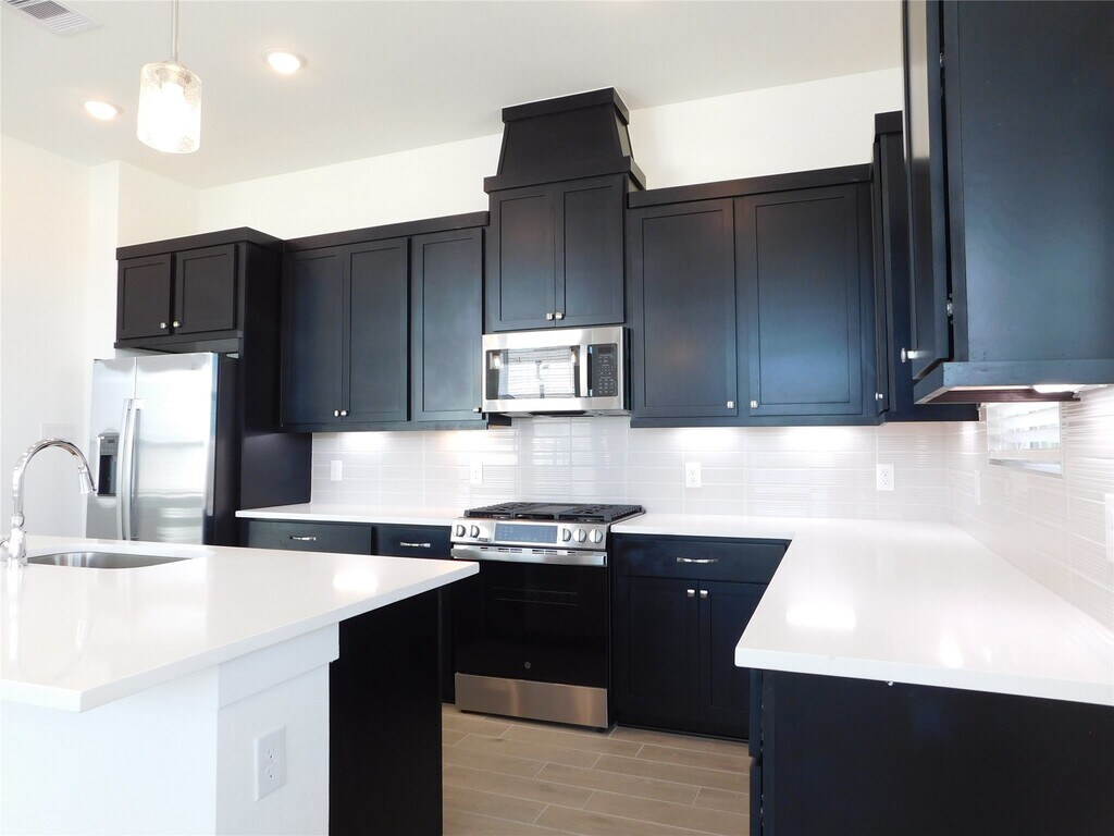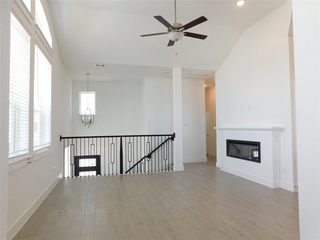 Highly sought-after two-story split-level home featuring 3 bedrooms,2.5 bathrooms,flex room,and a 2-car garage. Designed for low-maintenance living with wood-look tile flooring throughout main living areas. Chef’s kitchen includes 42" upper cabinets,quartz countertops,stainless steel appliances,under-cabinet lighting,and open-concept layout. Spacious primary suite offers garden tub,separate shower,and walk-in closet. Electric fireplace in living area. Exterior features include a covered balcony,covered patio,sprinkler system,gutters,and 2-car attached garage. Home is prewired for a security system. Located in the desirable Meridiana community; lifestyle with resort-style amenities: lazy river,pool,fitness center,onsite café,and year-round resident events. All appliances included. MLS# 92171137