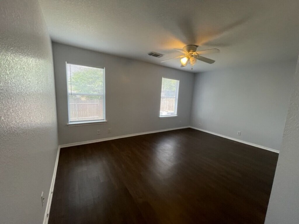 Vinyl Wood Flooring throughout. This home features 3 Bedrooms 2 Baths, Huge Walk In Closet in Master*No Carpet*Ceiling Fans* Nice size back yard. Close to shopping and Schools. R
