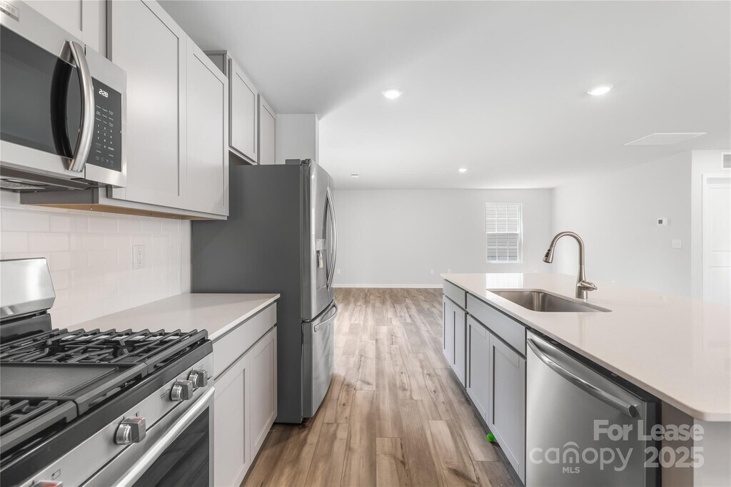 Like new single-family home,built in 2024,featuring 5 bedrooms,2.5 bathrooms,and 2213 sqft of living space. Available Nov 1 near UNCC,this 2024-built 2,213 sq. ft. 2-story home in The Retreat at Cameron Commons offers 5 beds,2.5 baths,a front porch,backyard,and 2-car garage. Main level features an open layout with family room,kitchen (grey cabinetry,quartz,backsplash,SS appliances,gas range,pantry),breakfast/dining areas,half bath,and laundry. Upstairs: primary suite with walk-in closet and bath,4 more bedrooms,hall bath,and loft. Near I-485,shopping,dining. Tenant pays lawn care,water,gas,electric; owner covers internet,HOA; fridge,washer,dryer included. Max 2 pets,$25/mo each. Tenants 18+ require credit/background check,proof of funds,application fee. Min 1-year lease; no short-term rentals/subleasing. Deposit: 1 month’s rent (credit >650) or up to 2 months (600–650).