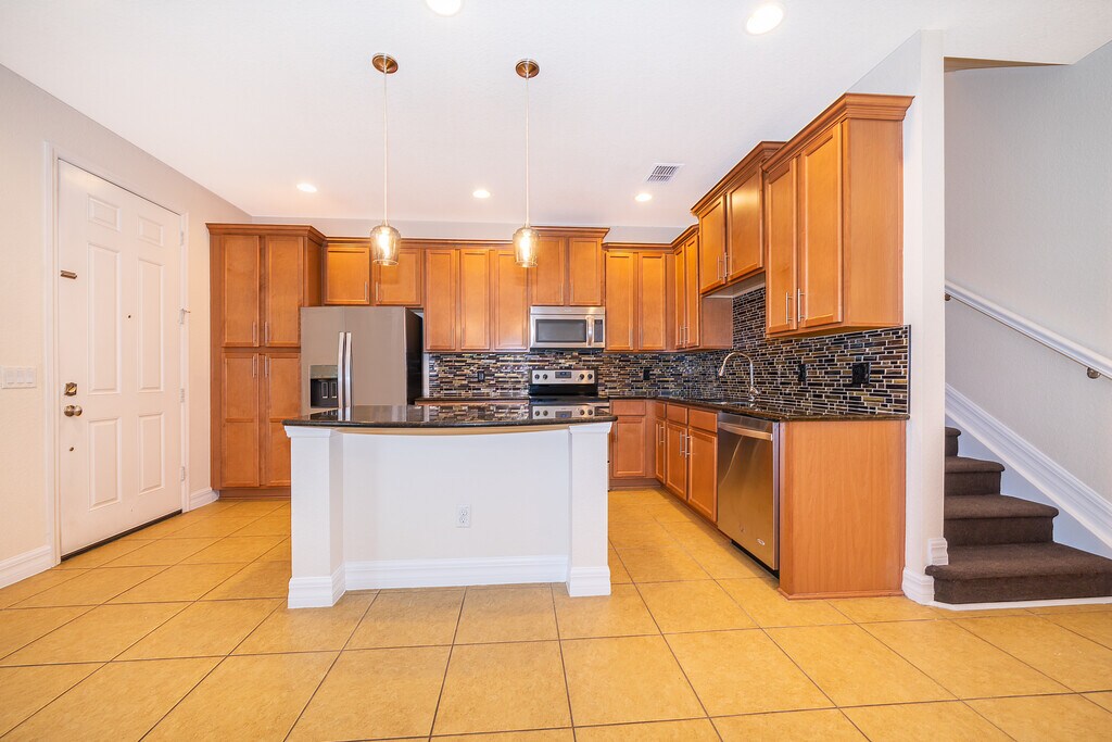 Beautiful 3 bed 2.5 bath townhouse located in the desirable Eagle Creek Golf community! Beautiful kitchen with newly designed backsplash and pending lights, granite countertops, and stainless steel appliances. The master suite features a spacious closet with newly installed wood closet towers and shelves, and a bath suite with granite vanities and walk-in shower. Located across the street from the new Medical City, close to shopping, the Orlando International airport and the highway. Gated community with 24 hour security guard at entrance. Great club house, golf courses, community pool. Easy access to 417 and major roads, minutes to schools, shopping, restaurants, Orlando International airport. Zoned for A schools! Once Approved, HOA community one time registration fee is $150 includes gate access and amenities access for the full length of living in the community.