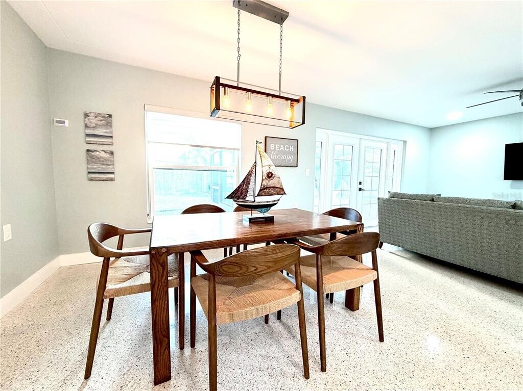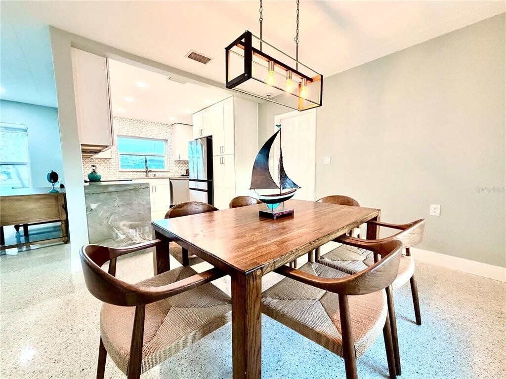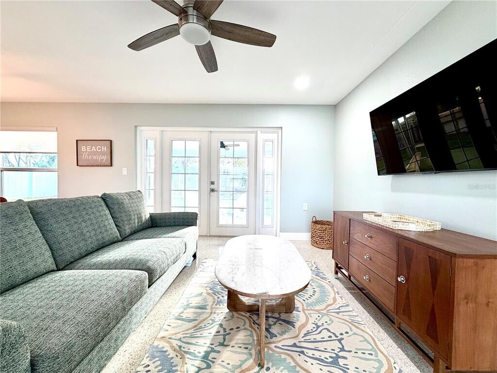 Location,Location,Location! Welcome to your perfect beach escape in Treasure Island. Nestled in a quiet neighborhood just moments from the beach,this beautifully renovated 2-bedroom,2-bathroom home offers an open-concept layout with high end finishes,gleaming terrazzo floors,a spacious living and dining area,and a stunning new kitchen featuring quartzite countertops,solid wood cabinetry,a mother-of-pearl backsplash,and Samsung appliances. The stylish primary suite boasts a modern en suite bath with an oversized walk-in shower,smart led lighting mirrored cabinet,while the second bedroom features room for two beds and closet system,the guest bathroom is appointed with a beautiful stone top,solid wood cabinetry,and a soaking tub/shower combo,all bathrooms are appointed with Kohler fixtures. Enjoy hurricane-rated windows and doors,a large screened terrace under the roofline,and a fully fenced large backyard—perfect for relaxing or entertaining. Parking includes a circular driveway and a deep one-car garage with Tesla charger,laundry and utility tub. Conveniently located just 4 min from the beach,public tennis and pickleball courts,a dog park,and Publix grocery store on the island,plus only 15 minutes to vibrant downtown St. Pete and 40 minutes to Tampa International Airport. Close to St. Pete’s top beaches,dining,shopping,and water activities,this one pet friendly home is in a golf cart friendly,welcoming community. Walk through right now with the Matterport virtual reality tour! MLS# TB8438028