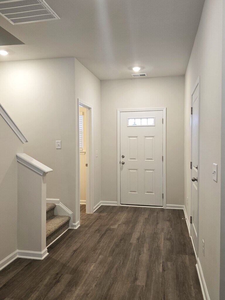 Brand new construction and ready for immediate occupancy! 3 bedroom, 2.5 bath townhome in new neighborhood, Knox Place. Driveway can hold up to 3 cars and there is a one car garage. Covered front porch leads to open concept floor plan with LVP flooring throughout the downstairs. Half bath conveniently located in the foyer, as well as entrance to the garage. Kitchen has granite counters, stainless appliances, recessed lighting, walk-in pantry and kitchen island with breakfast bar overhang. Adjacent living/dining space has plenty of room for furniture lots of windows for natural light, ceiling fan, coat closet and storage space closet under the stairs. Sliding glas door leads to the rear patio with fence dividers separating the space from the neighbors. Upstairs you will find the spacious primary suite with ceiling fan, double window, and large walk-in closet. En suite primary bath has double sink vanity, granite counters, linen closet and large walk-in shower. Hall bath with dual sink in granite counters and tub/shower combo located across from 2nd and 3rd bedrooms with ceiling fans. Laundry room located upstairs with hanging shelf and washer/dryer included! Neighborhood playground with adjacent seating for children to play. No pets.