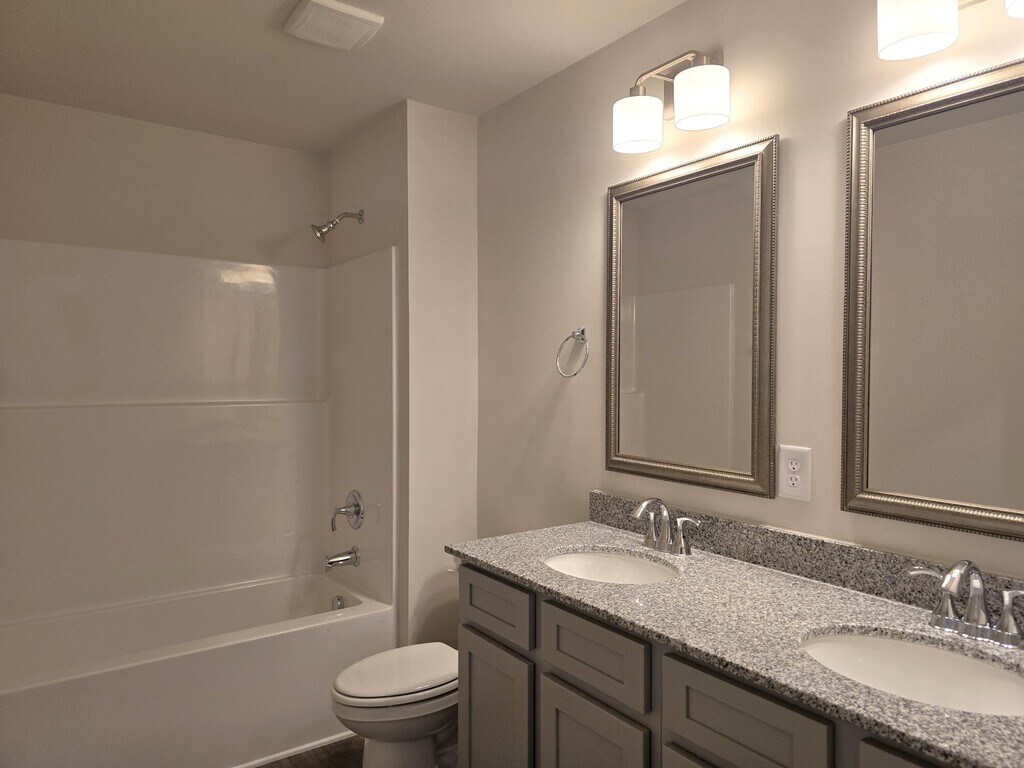 Brand new construction and ready for immediate occupancy! 3 bedroom,2.5 bath townhome in new neighborhood,Knox Place. Driveway can hold up to 3 cars and there is a one car garage. Covered front porch leads to open concept floor plan with LVP flooring throughout the downstairs. Half bath conveniently located in the foyer,as well as entrance to the garage. Kitchen has granite counters,stainless appliances,recessed lighting,walk-in pantry and kitchen island with breakfast bar overhang. Adjacent living/dining space has plenty of room for furniture lots of windows for natural light,ceiling fan,coat closet and storage space closet under the stairs. Sliding glas door leads to the rear patio with fence dividers separating the space from the neighbors. Upstairs you will find the spacious primary suite with ceiling fan,double window,and large walk-in closet. En suite primary bath has double sink vanity,granite counters,linen closet and large walk-in shower. Hall bath with dual sink in granite counters and tub/shower combo located across from 2nd and 3rd bedrooms with ceiling fans. Laundry room located upstairs with hanging shelf and washer/dryer included! Neighborhood playground with adjacent seating for children to play. No pets.