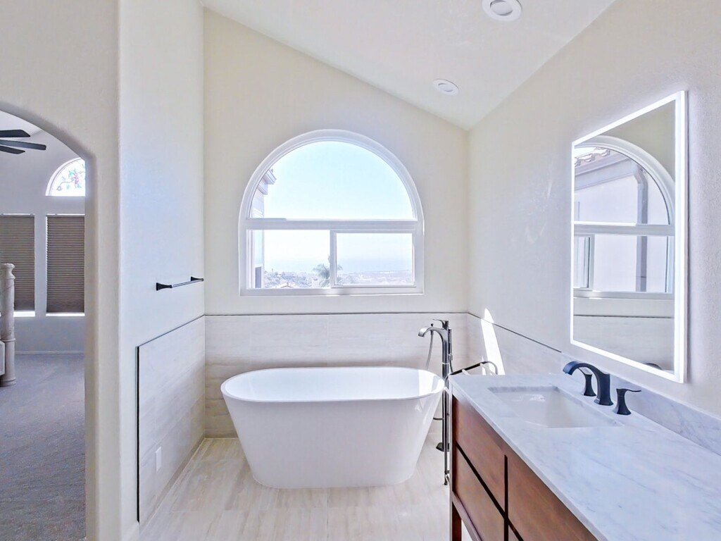 See Virtual Tour: A rare opportunity in the Bella Vista community, this exquisite San Clemente home offers panoramic ocean views, including Catalina Island. The home features beautiful new bathrooms, a deep backyard, enhancing its appeal and functionality, and is located on a peaceful single-loaded street for added privacy. The main furnished living areas showcase high ceilings, expansive windows, formal living and dining spaces with ocean views, custom wood shutters, new vinyl plank flooring, and designer paint. The remodeled kitchen provides stunning ocean views, white shaker cabinetry, a large walk-in pantry, stainless steel appliances, and bar seating. Adjacent to the kitchen is a secondary dining space and living room with ocean views, a fireplace, and exterior access. The main level includes a guest bedroom, a bathroom with a walk-in shower, and a laundry room. Upstairs, the westward-facing primary suite highlights the best ocean views in the house, with large windows, vaulted beamed ceilings, a spacious walk-in closet, and a bathroom with dual vanities, a walk-in shower, and a separate soaking tub. There are two additional bedrooms and a full bathroom with dual vanities. The outdoor living spaces are designed for maximum enjoyment, featuring a large patio, multiple seating areas, an in-ground spa, a lawn area, and lush landscaping. Additional highlights include a three-car garage with direct access, and a premier location near Rancho San Clemente Park, hiking trails, shopping, and dining. Experience ultimate coastal living with this elegant San Clemente home. Contact Real Property Management Agile for more details.