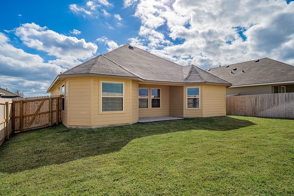 This 3-bedroom,2-bath home is located in the Liberty Village subdivision (Alpine Plan),conveniently situated near schools,grocery stores,and with easy access to Hwy 290. This like-new home includes a refrigerator and blinds throughout. The primary bathroom features a double vanity,soaking tub,and walk-in shower. The spacious island kitchen offers a walk-in pantry and gas oven/range,perfect for cooking and entertaining. Engineered water-resistant wood flooring is featured in the main living areas,with carpeted bedrooms for added comfort. Enjoy a charming front porch,covered back porch,fenced backyard,sprinkler system,and yard service included. MLS# 78768620