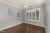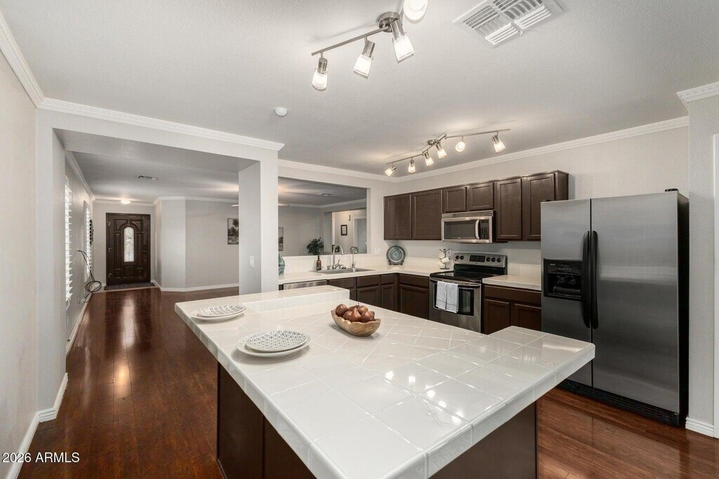 Come see this delightful N/S facing 4-bedroom/2-bathroom located in the desirable gated community of Dobbins Creek! Enjoy stunning mountain views right from your gated front courtyard. The back yard & multiple covered patios have plenty of room for entertaining. Inside enjoy a contemporary floorplan that's light & bright,& designed for comfort and function. Kitchen boasts upgraded cabinets & large center island. Primary has a walk-in closet,door to backyard,plus custom adjustable wood shutters throughout home. New Exterior Paint,Office Built-in and much more. Community features huge park and walking trails. Washer/dryer/Fridge included. Close to shopping,restaurants,and mountain trails and minutes to downtown,airport,and freeways. Schedule a showing today!