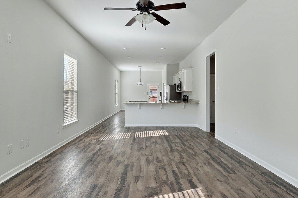 3 bedroom, 2 bath home in Hunters Trace subdivision. Built in 2019 by DSLD, this home includes a spacious living room and kitchen with vinyl plank flooring throughout (carpet in bedrooms), granite countertops, extra large island plus eat in bar and stainless steel appliances. The home also has a sizable master suite and master bath with double vanities, granite counter tops, separate shower and soaking garden tub. This split floor plan also includes two guest bedrooms and hall bath featuring granite counter tops and tub/ shower combo. Exterior amenities includes a two-car garage, partially fenced backyard and covered patio. This property is currently available with a 12-month lease, and a move-in date that is within 30 days. Also, please note this is a single family residential-zoned property, which does not allow for more than 2 non-related occupants. Our application process is easy and can be completed online. Tenant screening criteria includes: - Credit - Criminal & Eviction History - Verified income What do we look for in tenant screening? Applications are required for any occupant over the age of 18 years old. All applications and screening/credit criteria will need the following. Credit scores below 640 are declined. 640+ go to manual review Manual review guidelines No more than 2 reported late payments in the last 24 months on consumer accounts No 30/60/90 day late payments for mortgage or rental in last 24 months No collection accounts reporting No charge-offs or bankruptcy No judgments No eviction filings All applications are subject to review of reported criminal, sex-offender and other available data. The application can be completed here: