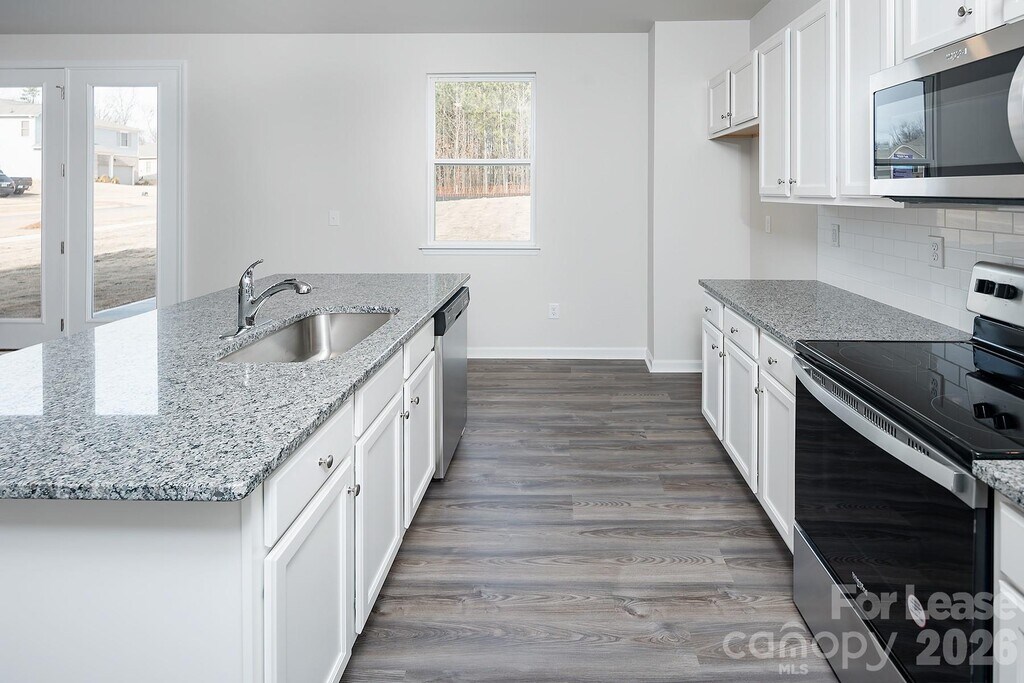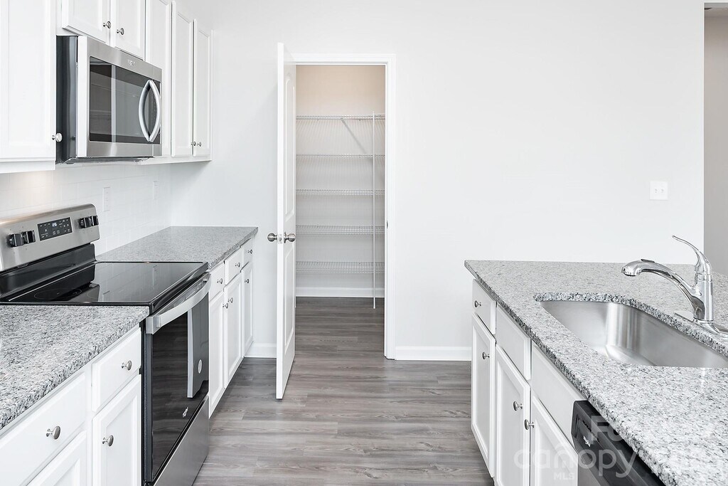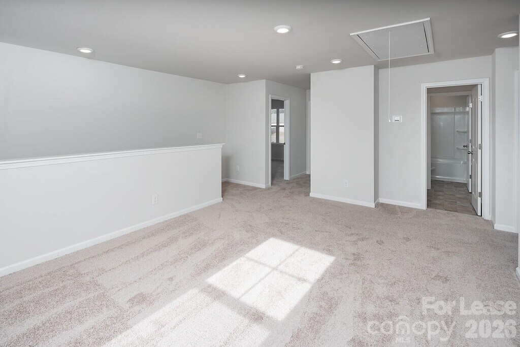 Welcome to this beautiful new construction 5-bedroom,3-bathroom modern home,located on a peaceful cul-de-sac in a 44-acre planned neighborhood in northeast Charlotte. The main floor features an open-concept living space centered around a spacious great room,which flows easily into a bright dining area and a well-designed kitchen. The kitchen includes a center island,stainless steel appliances,and a large walk-in corner pantry for added storage. Also on the main level,enjoy a full bathroom and two flexible rooms: a bedroom conveniently located downstairs and a separate bedroom or study tucked away for privacy. Upstairs,the layout offers more living space with a versatile loft area,two generous secondary bedrooms,and a spacious shared bathroom. The owner’s suite is a retreat of its own,with a private bathroom and a roomy walk-in closet. Outside,the home backs up to green space and offers a large backyard surrounded by trees,perfect for outdoor meals,play,or relaxing. It also includes a 2-car garage. This welcoming community is just one mile from I-485,offering easy access to everything the area has to offer. Nearby recreation includes Reedy Creek Park,which features sports fields,tennis and basketball courts,a dog park,a disc golf course,and the Reedy Creek Nature Center & Preserve with nearly 1,000 acres of forest and over 10 miles of walking trails. Residents are also close to major hubs like the Concord Mills shopping center,UNC Charlotte,University Research Park,and Uptown Charlotte,making this an ideal location for work,shopping,dining,and outdoor living. MLS ID CAR4340338