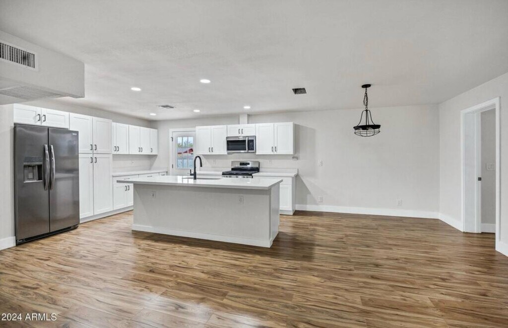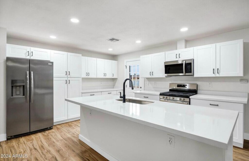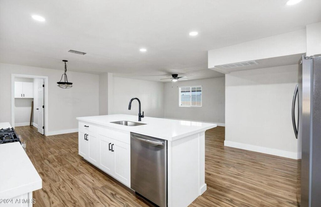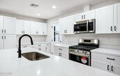 Beautifully remodeled 3 bedroom & 2-bathroom home with a private yard & parking! Brand new kitchen cabinets, new appliances including refrigerators, new flooring, new bathroom vanities with new counter-tops & new sinks, new toilets, new faucets, new fixtures and new mirrors. New windows, new hot water heater, new blinds and custom tiled showers. New ceiling fans with light kits, new baseboards and freshly painted! Brand NEW Samsung washer and dryer. Backyard storage shed and a low maintenance yard. Renter is responsible to pay all utilities or pay a flat amount monthly- to be determined at the begining of the lease. Any smoking allowed.