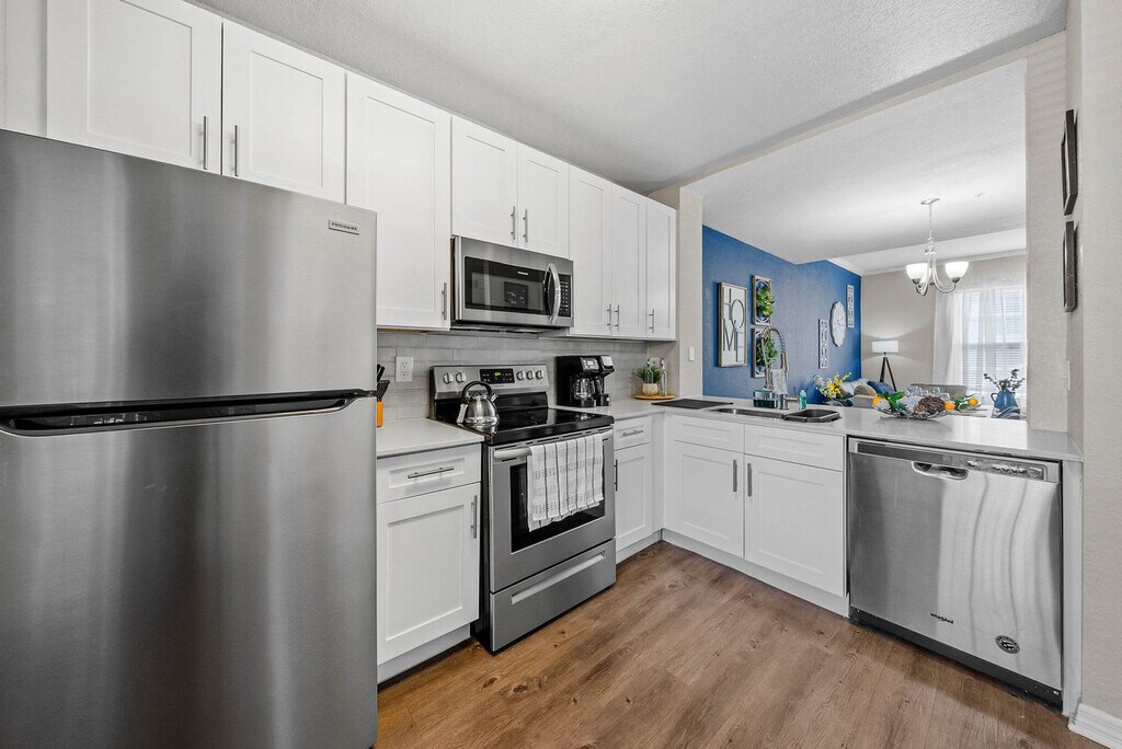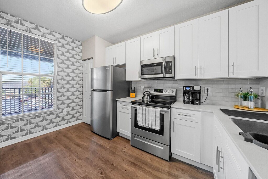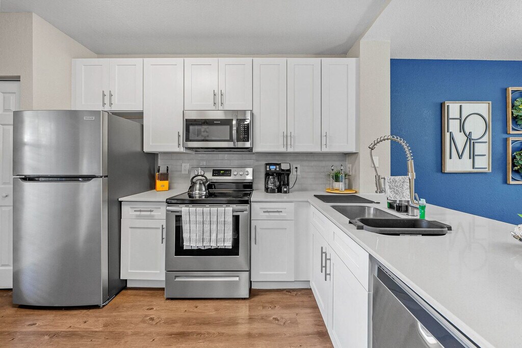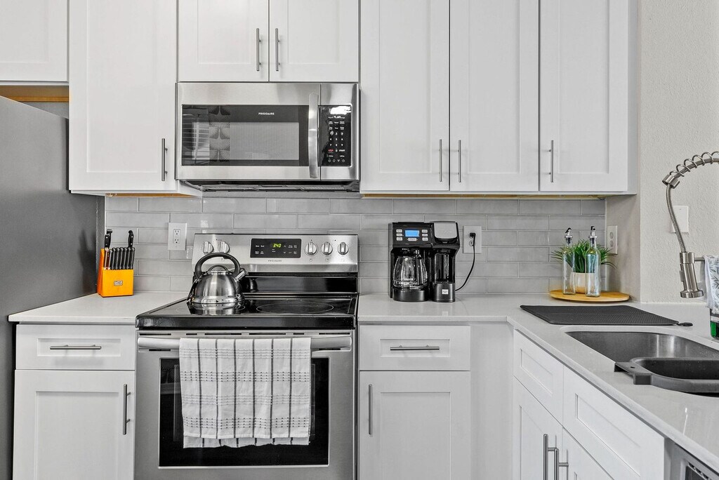 The advertised rate of $4,067/month is the lowest available price, based on a 30 day(s) stay with a move-in date of August 26, 2026. Rates vary depending on the duration of stay, season, and other parameters. For exact pricing and additional pricing components, please visit our website and enter your desired move-in and move-out dates. The rate is applicable when billed upfront; it can be higher if billed in multiple payments. Experience modern living and feel at home in this stylish 2-bedroom, 2-bathroom apartment in West Park Village, Tampa. Located on the second floor with access via stairs only (no elevator), this apartment is situated above shops and dining. This thoughtfully designed apartment is ideal for working professionals, families, or long-term travelers seeking comfort, privacy, and convenience. The master bedroom features a king-size bed, a walk-in closet, and a 65” Smart TV. The second bedroom includes a queen-size bed, a closet, and a 65” Smart TV. The living room offers a gray futon sofa and a yellow convertible chair for extra guests. The kitchen is fully equipped with modern appliances, cookware, and dining essentials, perfect for short or extended stays. Additional amenities include central air conditioning, a washer and dryer in the laundry area, cleaning supplies, an iron, a vacuum, and a mop. On-site parking is available for up to 2 vehicles per reservation. A pet fee of $100 per pet applies (max 2 pets, under 25 lbs). Early check-in (2:00 PM) and late check-out (12:00 PM) are available for $35 each. Located in a vibrant and professional neighborhood in Tampa, this apartment offers easy access to a yoga studio, a 6-mile jogging trail, and nearby Costco, Aldi, Publix, Westchase Golf Club, and Citrus Park Town Center Mall. You'll find a variety of restaurants, cafes, and shops within walking distance, perfect for after-work dining and relaxation. Minutes from the Veterans Expressway, you’re just 10-15 minutes from the airport, Downtown Tampa, Raymond James Stadium, Ben T. Davis Beach, and Clearwater Beach. No smoking is allowed. No parties or events of any kind are permitted, and no unauthorized guests are allowed; violations may result in immediate termination of stay without refund. Guests must be 21 years or older to book and must be present for the duration of the stay. To avoid any risk of towing, all vehicles must be registered in advance through the required Pre-Arrival Form. Quiet hours are observed from 10 PM to 8 AM. Guests will enjoy full access to a wide range of amenities, including an adults swimming pool (10:00 AM – 8:30 PM ET), a children’s swimming pool, a kids park, a gym, a business center, barbecue grill stations, and fun community games like Giant Connect 4, ping pong, cornhole, and a pool table. Valet trash pickup is available right outside the unit. [SI]