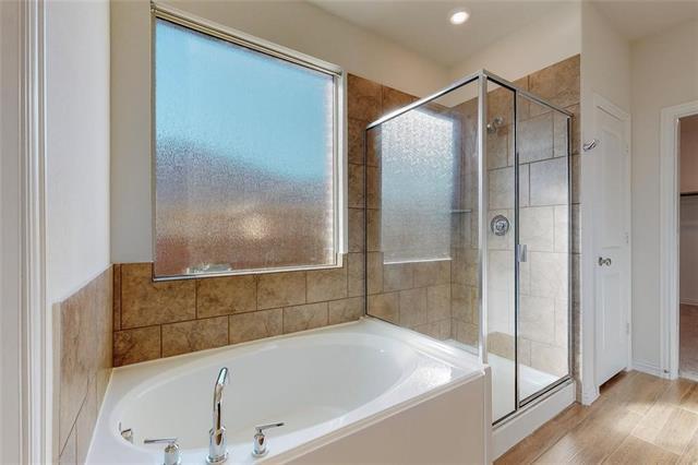 North facing this beautifully designed 4-bedroom, 3.5-bath (3 car garage) home offers the perfect blend of elegance, functionality, and space; and is located in the highly sought-after Prosper ISD. Step into a grand foyer with soaring ceilings that create an immediate sense of openness and sophistication. The thoughtfully designed floor plan features both the primary suite and a guest bedroom on the first floor—ideal for multi-generational living—along with a private office perfect for working from home. The main living areas showcase stylish wood-look tile flooring, complemented by abundant natural light and high ceilings throughout. The kitchen is both warm and inviting, featuring rich brown cabinetry, sleek white quartz countertops, and ample space for cooking and entertaining. Upstairs, you’ll find two generously sized bedrooms connected by a Jack-and-Jill bathroom, along with a spacious game room and dedicated media room—perfect for relaxation and entertainment. Step outside to enjoy a huge backyard with endless possibilities, complete with a covered patio ideal for outdoor gatherings. Additional highlights include: • 3-car garage with ample storage space • Bright, open layout with abundant sunlight • Functional layout for modern living This home truly offers comfort, versatility, and timeless appeal in one of the most desirable school districts.
