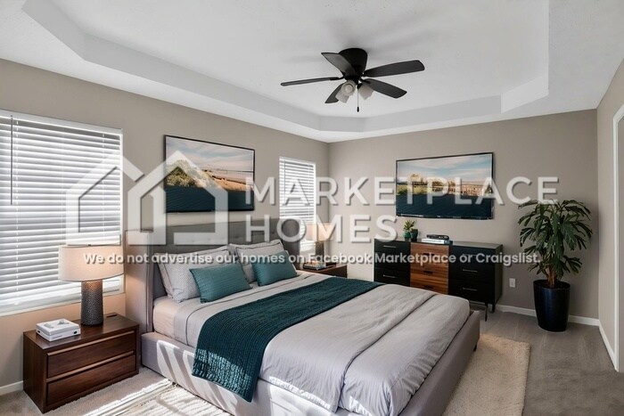 Welcome home to this sprawling, four-bedroom retreat with NEW carpeting and tucked away on a single-entry street, where comfort, connection, and everyday living come together beautifully. Step through the front door into an inviting entry and living space that immediately feels warm and welcoming—perfect for greeting guests or enjoying quiet evenings at home. As you move into the heart of the home, the open-concept main living area unfolds with seamless sightlines to the kitchen, creating an ideal setting for lively gatherings, holiday celebrations, or simply staying connected with loved ones while preparing meals. The eat-in kitchen is designed to inspire. With abundant cabinet and pantry storage, an expansive island for prepping and serving, and included major appliances, it’s ready for everything from casual breakfasts to festive dinner parties. Easy access to the backyard and patio makes indoor-outdoor entertaining effortless. All bedrooms offer comfortable space to unwind, including a generously sized primary suite that feels like a true sanctuary. The elegant tray ceiling adds architectural charm, while the private bath features a dual-sink vanity, relaxing soaking tub, and separate shower—your own personal spa-like escape at the end of the day. Outside, the spacious fenced yard with a wooden privacy fence are ideal for play, pets, gardening, or peaceful evenings on the patio. Come experience the warmth, flow, and possibility this home offers—schedule your tour today and take the first step toward your next chapter. BEWARE OF SCAMMERS. Only apply for this home through We DO NOT advertise on Facebook Marketplace or Craigslist, and we will NEVER ask you to wire money or pay in cash. The price listed is based on a 12-month lease for an approved applicant. Prices and special offers are valid for new residents only. All leasing information is believed to be accurate; however, prices and special offers may change without notice and are not guaranteed until the application has been approved. Information deemed reliable but not guaranteed. Please verify all important information. Additional fees may apply, including a lease administration fee, damage waiver fee, and pet fees (where applicable). This property allows self guided viewing without an appointment. Contact for details.