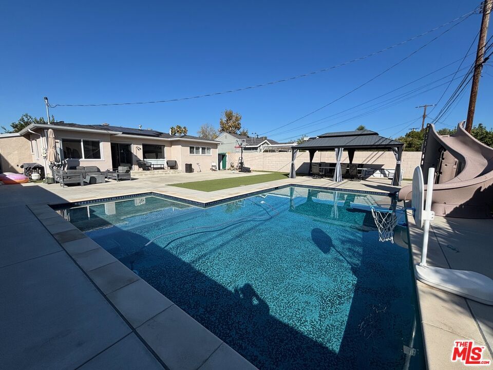 Exquisite Updated 3-Bedroom, 2-Bathroom Home with Pool & Gazebo! Welcome to this beautifully updated home offering comfort, style, and functionality in a peaceful residential neighborhood. Thoughtfully designed with modern finishes and a spacious, open layout, this property is perfect for families or anyone seeking a private retreat with seamless indoor-outdoor living. Step inside to discover bright, airy living spaces filled with natural light throughout. The modern kitchen features generous counter space and ample storage ideal for both everyday cooking and entertaining. Each bedroom provides comfort and plenty of closet space, while the updated bathrooms are sleek and well-appointed. The backyard oasis is a true highlight enjoy an expansive yard with a private pool and gazebo, perfect for relaxing or hosting gatherings under the California sun. Additional features include: Attached garage converted to an ADU (currently rented) Four Nest cameras and a Nest thermostat included. This home perfectly combines modern living with resort-style comfort, offering everything you need in one exceptional property. MLS# 25609863