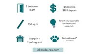 1 Bedroom, 1 Bath Apartment at Maple Leaf Apartments Located at Maple Leaf Apartments, this 1 bedroom, 1 bath apartment features a large living room that leads into an open kitchen. There is plenty of closet storage space throughout the apartment including a kitchen pantry, a coat closet, and a linen closet. The lower units feature a walk-out patio and the upper units have an oversized premium deck. One bedroom units start at $1,245 per month and include gas, heat, water, sewer, trash, recycling, and parking. Residents would be responsible for electricity and any wifi/cable options you should want. The security deposit is $995.45 deposit and we have a $50 application fee. Pet fees apply if applicable. Listing Link: Showings Availability: Monday-Friday by appointment only. Additional information below. Bedrooms: 1 Bathrooms: 1 Rent: $1,245 Deposit: $995.45 Application Fee: $50 (requirements below) Utilities Included: Gas, Heat, Water, Sewer, Trash, Recycling and Parking Resident Utility Responsibility: Electricity and Cable/Internet (optional). When is this available? You can see all of our available properties and when they are available here: Lakeside- Can I see the property? We have showing times available Monday through Friday. To schedule a tour, visit our website (Lakeside-), select an available apartment and then select ‘schedule tour’. If you have any problems scheduling a tour, give us a call () and we can text you a direct link. You will only be able to select a date that is available for a tour. If you are looking at an apartment available 30-60 days out, it may be still occupied and unavailable for immediate tours. We currently only show vacant apartments to respect our residents privacy. How do I apply? You can apply directly from our website: Lakeside- . Click on the listing on the home page and select "Apply Now" What are the requirements to qualify? Credit Score : 650, Income : 3x Rent in Gross Income, Good Rental History (no evictions or outstanding balances with previous landlords), National Background Check. Application fee: $50 per adult. Can I bring a pet? We allow cats and most dogs under 50lbs. Pet fees do apply. Please inquire for specific details. Do you accept section 8 or another form of vouchers? We are not a low income or government assisted property. However, we will work with any assistance program as long as you qualify through the application process (see below). What is the parking situation? There is parking throughout the community on a first come, first serve basis. Do I need to apply before I can see the property? No, we do not require that you apply before you tour. Our rentals tend to lease quickly. If you are worried about missing out on a property, we highly recommend you apply. Are there any hidden fees? We take pride in being upfront and honest on our pricing. The only additional fee we charge on top of the advertised price is for pets (if allowed at the property). No gimmicks here. Is the first month’s rent prorated? You better believe it! By submitting your information on this page you consent to being contacted by the Property Manager and RentEngine via SMS, phone, or email.