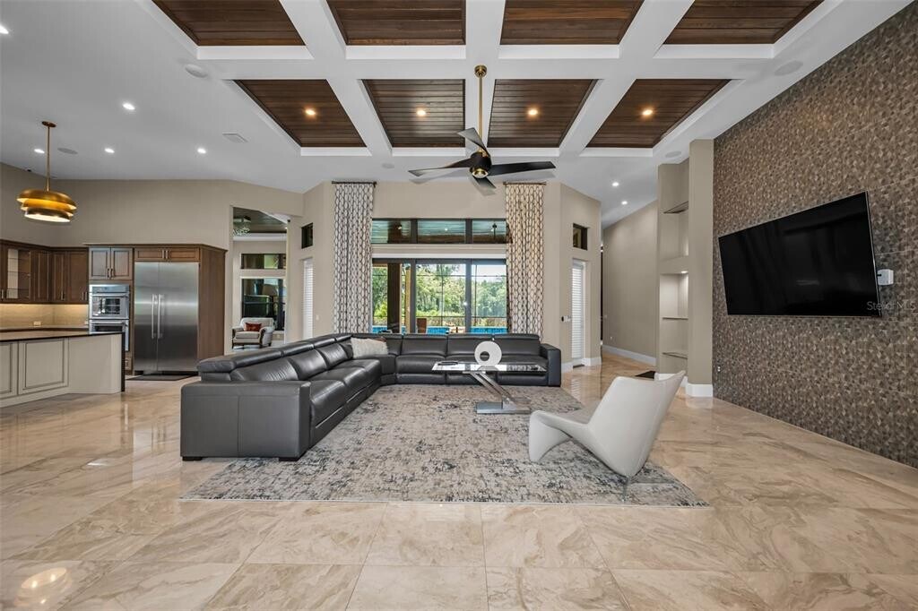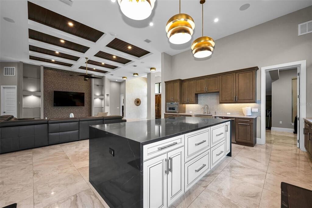Experience elevated living in the highly sought-after Champions Club community of Trinity. Perfectly positioned along the 2nd hole of Fox Hollow Golf Club,this exceptional estate blends luxury,comfort,and sustainability with breathtaking golf course views. From the moment you enter,the home makes a statement—soaring ceilings,abundant natural light,and thoughtfully curated design create a warm yet sophisticated atmosphere. Built with eco-conscious materials and enhanced by a near-zero-cost solar energy system,this residence offers modern efficiency without compromising style. This partially furnished home features 5 spacious bedrooms,4 full baths,and 2 half baths,along with a private den/study,dedicated gym,and an inviting bar and conversation room—ideal for entertaining or relaxing. Smart home security and monitoring systems provide peace of mind,while high-end finishes such as Hunter Douglas shades and custom drapery add a refined touch throughout. Comfort is paramount with a high-efficiency LG HVAC system,dual mini-splits,and a whole-home water purification system. The spacious three car garage is equipped with an electric vehicle charging station for modern convenience. Step outside to a resort-style retreat featuring a screened-in pool with beach entry,elegant paver decking,and a fully equipped outdoor kitchen. A unique wet and dry bar setup completes the space,making it perfect for hosting gatherings or enjoying quiet evenings overlooking the course. Located just minutes from premier shopping,dining,and top-rated amenities,this home offers the perfect balance of luxury living and everyday convenience. MLS# W7885011