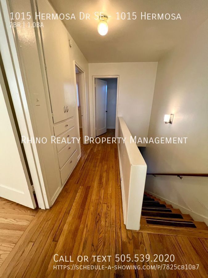 Adorable two story, 2 bedroom, 1 bath has an antique feel, with solid wood flooring and casement windows. It has a spacious kitchen and laundry hook-ups with back door access into a common area. It is near the freeway and not far from Kirtland Airforce Base, UNM, VA Hospital, and the Airport. Close to Puerto Del Sol Golf Course and Loma Linda Community Center. Burton Park, Hermosa Green Park, and Beyer Park are not far. Stores and restaurants have, Michael Thomas Coffee Roasters, El Sabor De Juarez, Dunkin' Donuts, Frontier, Starbucks, Fedex Office Print & Ship Center, Flying Star Cafe, Walmart Supercenter, Dairy Queen, 999 Seafood Supermarket, Taco Bell, and Buffalo Wild Wings. Nearby schools include, Bandelier Elementary, Wilson Middle, and Highland High. Please call to schedule a viewing! Utilities: PNM & NM Gas in resident's name. Residents pay flat rate water/sewer $40/mo Pet Policy: Cats & Small dogs allowed 30 lbs or less $300 Pet Fee, nonrefundable $30 Pet Rent/pet Limit 2 Pets Vehicle/Parking Policy: Limit 2 Vehicles Not assigned Potential Tenancy Fees: Please call to schedule a viewing! 2 Story Unit Antique Feel Casement Windows Close To Unm & Cnm Near Albuquerque International Airport Near Kirtland Afb None Open Courtyard Solid Wood Flooring Washer/Dryer Hook Up