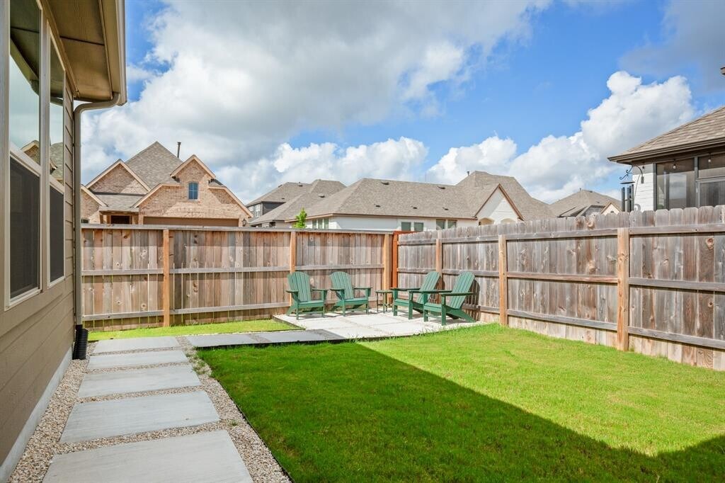 Just minutes from the charm of historic Gruene Hall, boutique shopping, Rockin’ River Rafting, and the vibrant energy of downtown New Braunfels, this gem of a home offers the perfect blend of style and convenience. Practically brand new, this three-bedroom, two-bathroom home features a thoughtfully designed open-concept layout with raised ceilings, warm modern finishes, and sleek Cafe appliances that elevate the kitchen experience. The spacious primary suite includes a luxurious standalone soaking tub and separate glass-enclosed shower. Epoxied garage floors and built-in rafter storage add functionality, while the beautifully enhanced backyard invites you to unwind. A custom paver walkway leads to a cozy seating area ideal for relaxing under the stars, complemented by a shaded patio just outside the back door — perfect for morning coffee or evening gatherings. Whether you're seeking your forever home or the perfect Hill Country retreat, this one checks all the boxes.