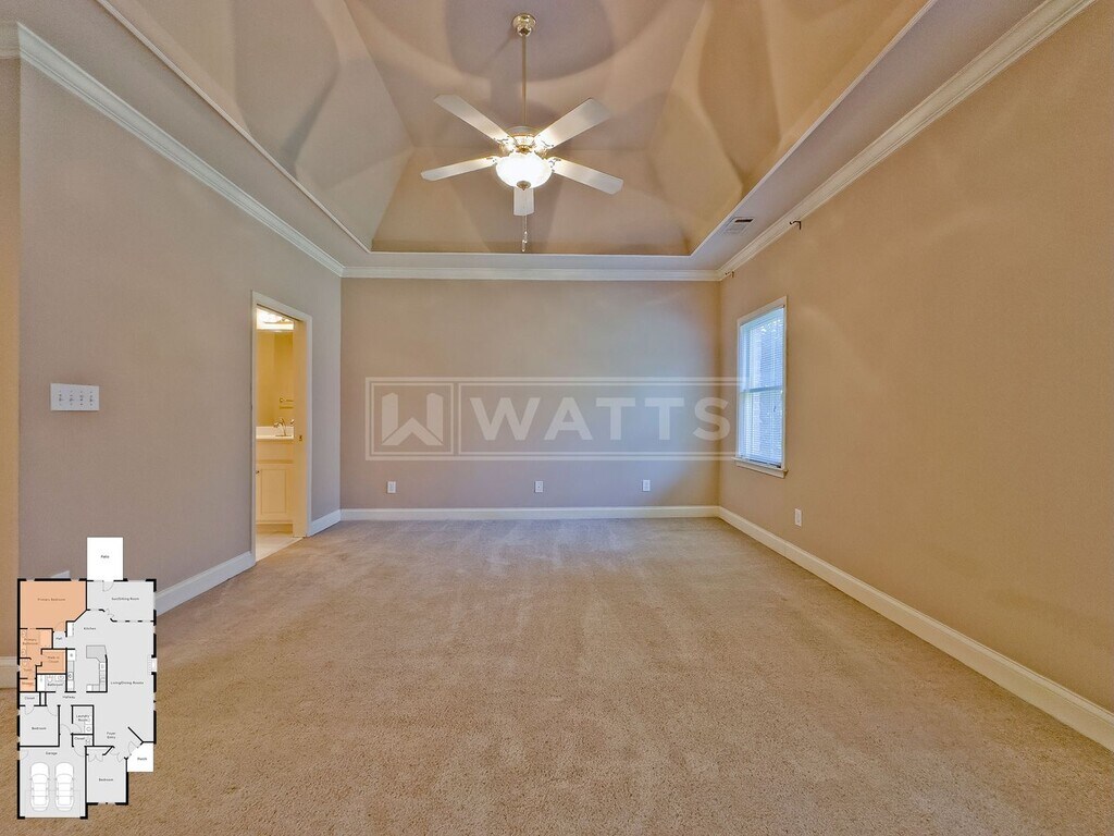 Welcome to this spacious 3-bedroom, 2-bathroom garden home located on a quiet cul-de-sac street in the desirable Riverchase community of Hoover, AL. This home boasts a plethora of amenities that cater to a comfortable and luxurious lifestyle. The interior features 9'+ ceilings, crown molding, and cathedral/vaulted ceilings that add a touch of elegance to the space. The hardwood and hard tile floors are not only beautiful but also easy to maintain. The kitchen is a chef's dream with its stone countertops and modern appliances. A breakfast nook and pantry add convenience to your daily routine. The primary bedroom comes with an ensuite bath, a walk-in closet, and carpeted flooring for added comfort. The ensuite bathroom is a sanctuary with a jetted garden tub, standing shower, and double vanity. The home also includes a sun/sitting room for relaxation and a laundry room with washer/dryer connections. The rear patio is perfect for outdoor entertaining, and the 2-car garage provides ample storage. The home is equipped with a gas fireplace for cozy evenings and a sprinkler system for easy lawn maintenance. Central heating & air, ceiling fans, and a shared hall bathroom with a standing shower round out the features of this impressive home. Convenient to interstate access, restaurants, shopping, grocery stores, gyms and more. 12-month lease term. $300 pet fee + additional $30/mo. (small dogs only; must meet certain breed, age, and size requirements). Tenant is responsible for setting up and maintaining all utility services to the property (power, gas, & water). No Smoking Allowed inside unit. Visit wattsrealty[.]com/tenant-resources to view our qualification requirements for residency. Subject to prior sale or lease, change in price, or withdrawal from market without notice. Rental availability may change hourly, and there is no guarantee that rental availability listed will be the same when you contact our office. The information contained herein from sources deemed reliable, but no warranty or representation is made to the accuracy thereof. Watts Realty Co., Inc. Copyright 2026. All rights reserved.