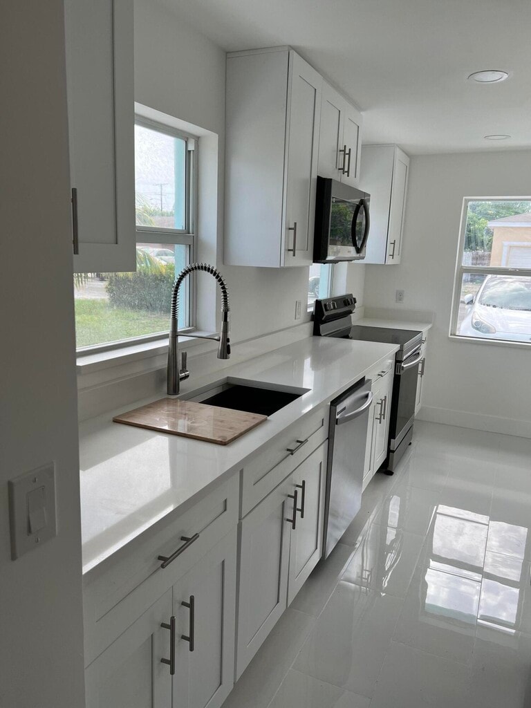 BEAUTIFUL UNIT COMPLETELY REMODELED 12 MONTHS AGO FROM TOP TO BOTTOM - NEW APPLIANCES,ETC. FURNISHED. with extra linens,etc.,. White tile thruout! Hurricane Impact Windows,Newer roof! Wonderful woman in back unit who likes to garden and cook will be a Great Neighbor!! MLS ID R11156467