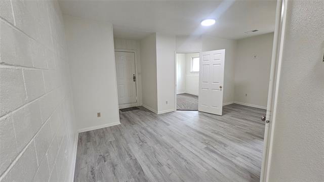 ALL BILLS PAID 2 Bedroom 2 blocks from UNT campus! Free WiFi. Well kept with friendly neighbors. This home has insulated windows, cinderblock exterior walls, attic insulation, central AC, updated wiring with grounded outlets. The house has a unique style. Fully renovated with new kitchen cabinets, Dallas White Granite Counters, Delta Gooseneck faucet, Deep Stainless Steel undermount Sink, Stainless Steel Appliances. New Shower tile with semi Frameless sliding glass doors. 36 in vanity. One bedroom has a step down room that makes a great study nook and closet. Rear access to the utility room and rear parking (1 space allotted per unit first come first served). Fresh paint inside and out. Cool murals on the outside make it stand out. Includes frig and other appliances. Plenty of parking. Good access to I35. No Sec 8. Wood look Luxury Vinyl Plank flooring. Pet friendly. Great for Students. Nice place to live! Available for move in. Direct access to back yard.