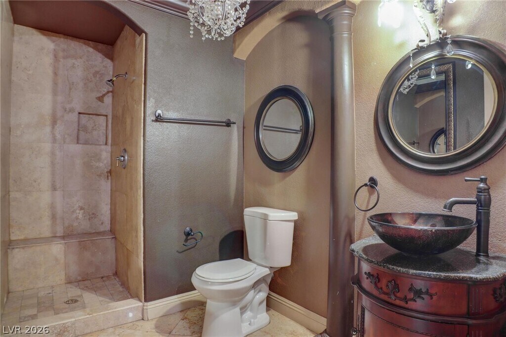 Welcome to an extraordinary estate in the prestigious, guard-gated Stonegate community. From the moment you enter, a dramatic dual staircase and soaring ceilings set the tone for refined elegance. The expansive floor plan is filled with natural light, highlighted by a breathtaking living room featuring 21-foot ceilings, floor-to-ceiling windows, and a stunning fireplace. Designed for both comfort and flexibility, the home offers two luxurious primary suites—one conveniently located downstairs and another upstairs for added privacy. The chef’s kitchen is ideal for entertaining, complete with granite countertops, a 5-burner cooktop, custom cabinetry, butler’s pantry, oversized island, and breakfast bar. Step outside to your private backyard retreat with a sparkling pool, built-in BBQ, and covered patio—perfect for relaxing or hosting gatherings. Additional features include a spacious laundry room with storage and a three-car garage.