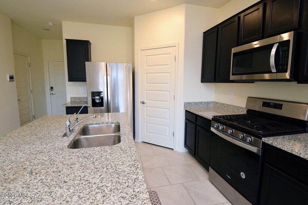 NW Marana Saguaro Bloom 4 Bed 2 Bath built in 2021. 1569 SQ FT. Open-concept floor plan with all the amenities a new construction home comes with. The kitchen has a breakfast bar, gas stove, walk-in pantry, and all stainless steel appliances. The primary suite is spacious and has great natural light from the 2 south-facing windows. The primary bath has a dual sink vanity, a walk-in shower, built-in storage, and a huge walk-in closet. The backyard has a covered patio as well as a flagstone seating area with a bench and fire-pit. Full-size washer/dryer. This home came built with numerous modern and energy-efficiency features, an alarm system, and a tankless water heater. This home is offered as NON-SMOKING. Pets are subject to owner approval. MLS ID 22609678