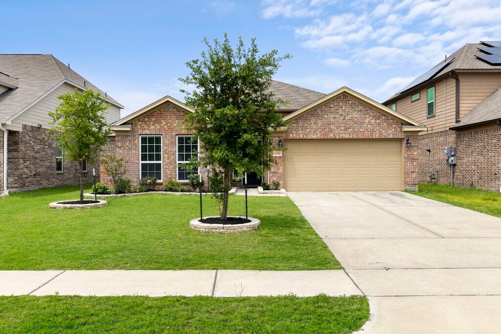 Welcome to your new home in the highly sought-after Montgomery Creek Ranch community! This beautiful,like-new brick one story home has four spacious bedrooms,split floor plan provides added privacy,with secondary bedrooms located in the front of the home and the primary bedroom in the back. As you enter the home through the foyer,you will notice the study located just off to the side with beautiful French doors. Two additional bedrooms and one and a half bathrooms are also conveniently located off the foyer. The living spaces are open and expansive,with a generous square footage that includes a lovely island breakfast bar kitchen,a cozy family room with gas log fireplace,and a dining room perfect for entertaining. Enjoy relaxing evenings on the covered back patio,which offers a peaceful retreat with no backyard neighbors. Don't miss out on the opportunity to live in this beautiful home North of The Woodlands. MLS# 35388118