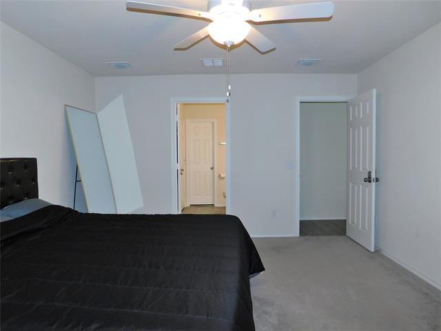 Stately four bedroom, two and a half bath (plus office) home in Haslet with first floor primary bedroom! Office off entry. Open kitchen and living room setup. Kitchen includes stainless steel appliances, quartz counters and an island. Second floor has additional living area, three bedrooms and a full bath. All bedrooms have walk-in closets. Refrigerator included. Easy access to Hwy 114. Owner covers HOA dues.