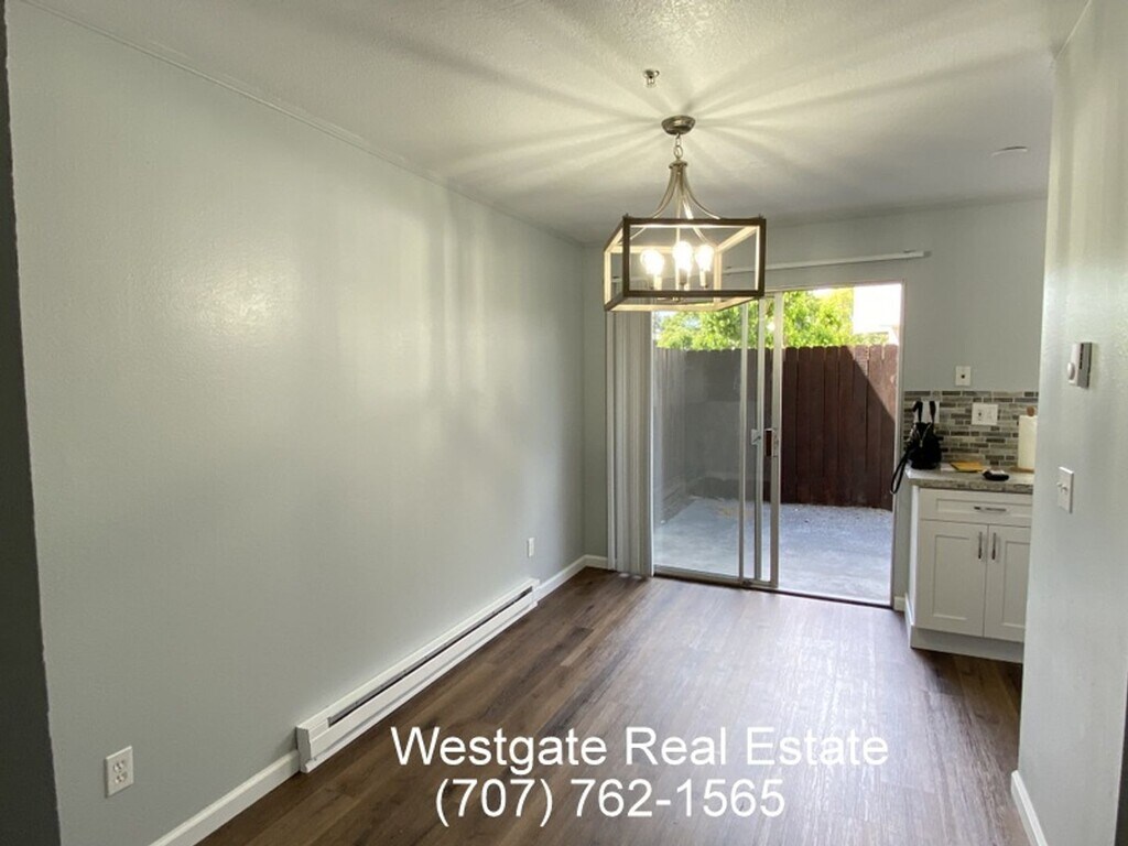 ***NEXT OPEN HOUSE SHOWING DATE - WEDNESDAY, MARCH 18th FROM 4:45-5:15*** PLEASE CHECK OUR WEBSITE ON THE DAY OF THE OPEN HOUSE FOR ANY POSSIBLE CANCELLATIONS. ***For the latest information, updates, and applications, please check the Westgate Real Estate and Westgate Property Management website: ***Beautifully Remodeled 2 bdrm/1.5 bath townhouse in Evergreen Laurels, pool and tennis courts, convenient location, nice size patio, large bedrooms, closets, and both bedrooms have own balconies, fireplace, refrigerator Recently remodeled with fresh paint and a new modern kitchen, with upgrades galore. Your new kitchen features new cabinets, solid surface countertops, tile backsplash, stainless range, hood & dishwasher. Rich laminate flooring throughout the living, dining, and kitchen areas. Interior doors and hardware have been upgraded. New window coverings & light fixtures throughout. Both bathrooms are remodeled. Two spacious upstairs bedrooms with balconies feature ample closet space and new carpeting. A newer washer & dryer are included. Complex amenities include tennis and basketball courts and a pool. Close by to local shopping, golf, Sonoma State University, and transportation. Water, sewer, and garbage included, a value of over $125.00 monthly. The owner would prefer no co-signers or pets, please. PLEASE READ - General Showings and Application Process of Westgate Real Estate: Due to market conditions and security purposes, properties are shown by group appointment. To be notified of appointment times, please be sure to complete prequalification questions and make sure you meet the qualification requirements. Please drive by the property to view the exterior. You may check our website at for the date and time of the next Open House and to view a walk-through video. If no Open House is listed on the webpage there could be applications pending or the home is tenant occupied. To be emailed of Open House times, you may submit your contact information by clicking the “contact us” button on each property. Please do not disturb any current tenants or neighbors. We require good credit (670), excellent rental references, and income/employment verification. For a complete list of application instructions, fees and to apply online, please visit our website at under each property click on the “Apply Now” button. There you will see the required information for the rental application, and fees. Please note; all units rented and managed by Westgate Real Estate are smoke and drug-free. Utilities and yard maintenance are not included in the rent unless outlined in the property description. Pet policies listed in the individual property description above are at the sole discretion of the property owner and if considered, will require an additional deposit. Westgate Real Estate and Westgate Property Management DRE #01073772