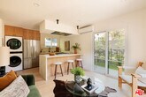 This newly rebuilt detached casita, crafted by AIH Development in 2025, offers a private retreat in the heart of Silver Lake's coveted Sunset Junction. Designed with modern comfort and timeless finishes, the home features one bedroom and one bathroom, perfectly scaled for stylish, efficient living. The light-filled layout includes a spacious living area with white oak flooring throughout. The kitchen is outfitted with custom oak cabinetry and top-tier Fisher Paykel and LG appliances, while the bathroom is finished with designer tile and stone. Full sized In-unit laundry adds everyday convenience. The casita opens directly to its own gated yard space, providing privacy and a rare outdoor sanctuary in the city. One dedicated parking space is included, along with EV charging access, and the property is fully gated with an intercom system for security. Steps from Erewhon, Intelligentsia, Tartine, Bar Seco, Stella, the weekly Farmer's Market, and countless other neighborhood favorites. This thoughtfully designed casita combines privacy, luxury, and walkability in one of Los Angeles's most desirable locations. MLS# 25599761