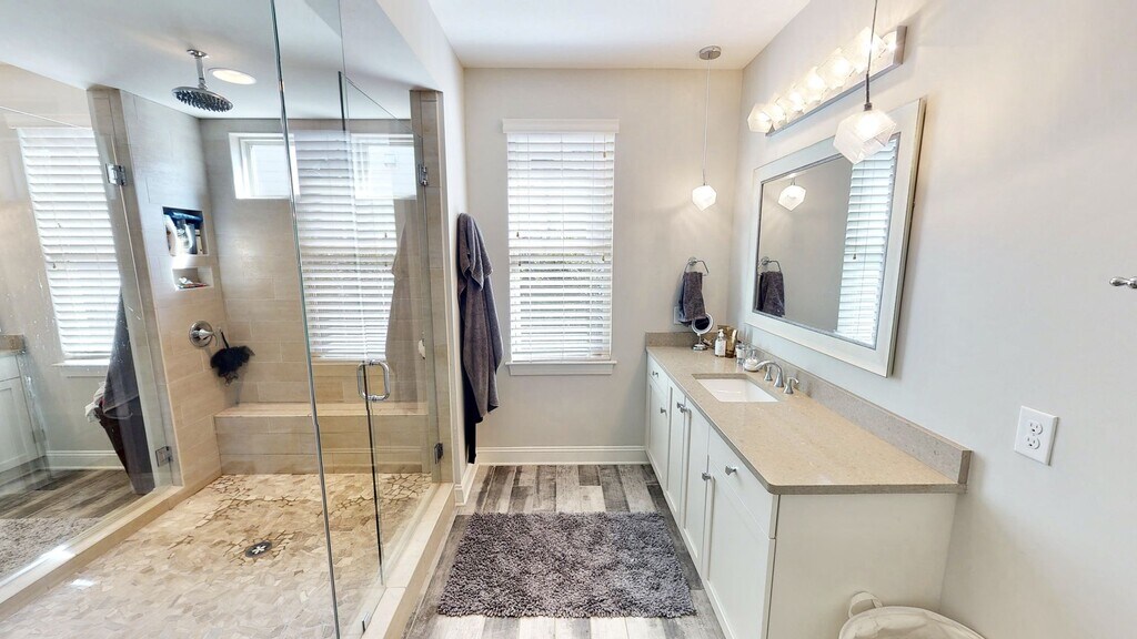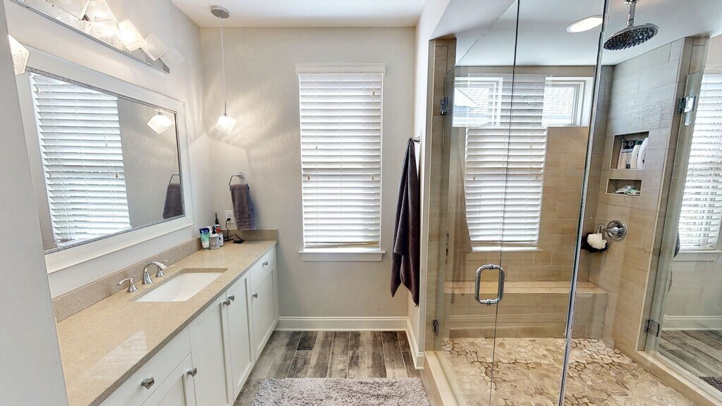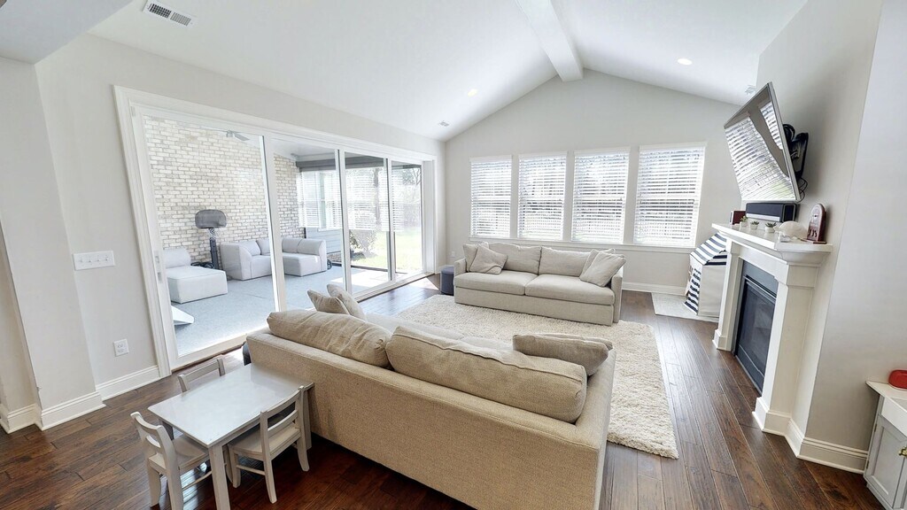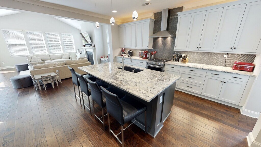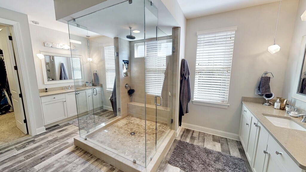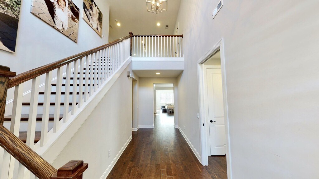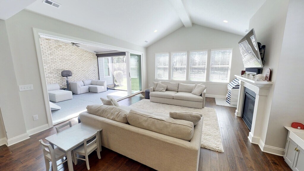 Gorgeous and rare find - lovely Cotswold 5 bedroom 4 bath home available for lease. Beautiful finishes throughout - a chef's dream kitchen with oversized island, high end stainless steel appliances, granite countertops, butler's pantry, hardwoods on the main floor and a functional open floor plan. Primary bedroom suite on the main floor with an amazing "glass box" shower. Additional guest bedroom and full bath on the main floor. Disappearing sliding doors bring the outside in, but not the bugs with the fabulous integrated screen porch. Laundry rooms located on both the main and upper floors. Fenced backyard with access to community green space. Upstairs boasts a giant bonus room, three bedrooms and 2 full baths. 2 car garage and easy parking in front of the house.