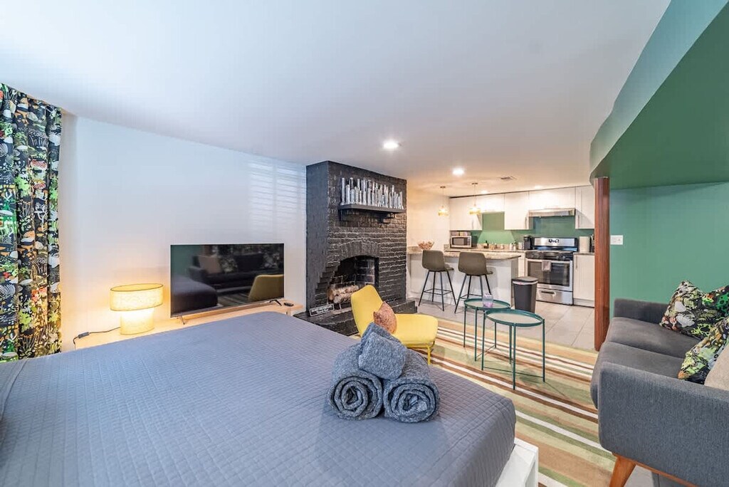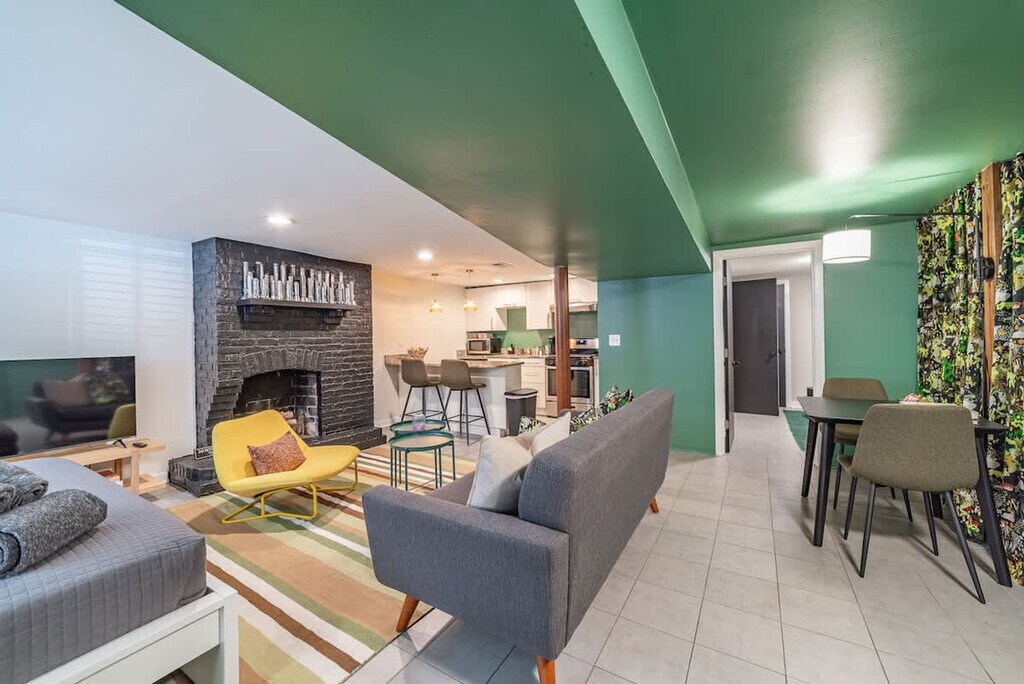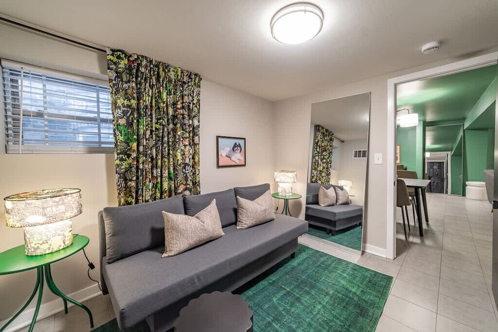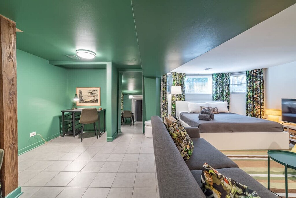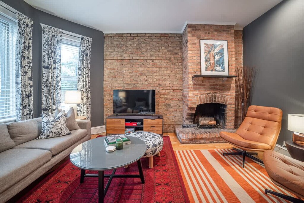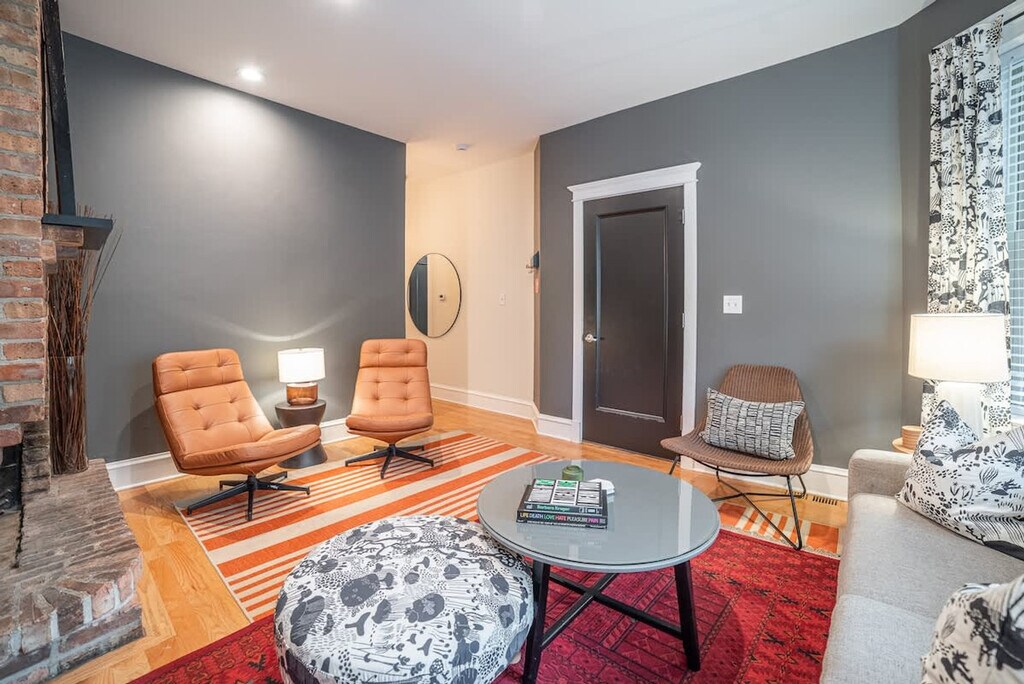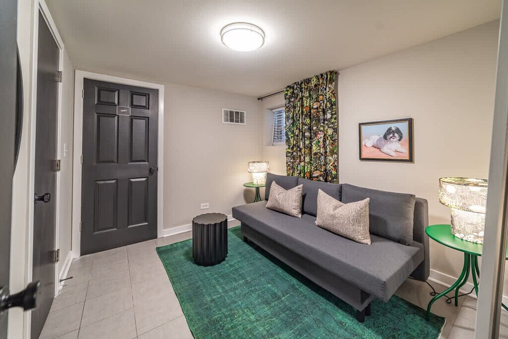 Feel at home in this 9-bedroom, 5-bathroom space, a 7-minute walk from Wrigley Field, perfect for large groups. This apartment features 3 living rooms, 3 kitchens, and plenty of room to spread out, making it perfect for gathering and recharging between outings. It has 9 bedrooms, 10 beds, and 5 full bathrooms across 3 levels. The bright and stylish living areas are thoughtfully designed with modern decor, a cozy sofa, and a smart TV for streaming. The 2 fully equipped kitchens allow you to prepare meals with ease using full-size appliances and cookware. The comfortable bedrooms feature soft cotton linens and ample storage. The updated bathrooms include fresh towels and soaps/shampoo. In-unit washer/dryer combos are conveniently located inside both the 1st and 2nd level spaces. Parking for 1 car is included. If you need parking for more than one car, it is recommended to use SpotHero to easily reserve a nearby spot. Located in one of Chicago’s hottest neighborhoods, Lakeview/Wrigleyville, this apartment is packed with countless restaurants, places to shop, and nightlife. Adjacent to the Sheridan red line 'L' stop, getting around the city couldn't be easier. Reach downtown in 16 minutes or head to O’Hare or Midway Airports with ease. There is a no-party policy, and noise should be kept to a minimum between the hours of 11 pm and 8 am out of respect for the neighbors. There is no smoking of any kind in the unit, and there is an automatic $500 cleaning fee if there is any smoke smell inside of the unit. There is no drinking, smoking, playing music, or loitering on the front porch or anywhere outside within the perimeter of the building's property line. Quiet hours are from 10 pm to 8 am. The city of Chicago's Short-Term Rental ordinance prohibits any type of large social gatherings in the space. Guests in violation of this ordinance will face fines of $3,000 per event and $500 per attendee. There is an automatic $100 late check-out charge if you're still in the property 20 minutes after check-out. The upper and lower levels are accessed via separate doors in the front building common-area entryway. There is an apartment in the basement level that will pass through the entryway to come and go. The building and units are adjacent to the "L" train tracks, which means you will hear train noise regularly. [SI]
