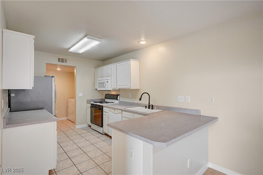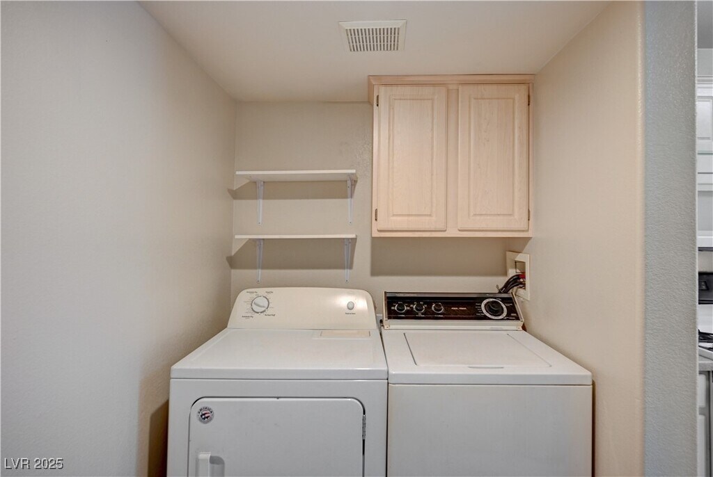 Lovely 2 story townhouse in a gated community in the Silverado Ranch Area. Cathedral Ceiling and cozy gas fireplace in family room. Two master bedrooms upstairs with on-suite baths. Step saver kitchen with bkfst. bar. Convenient 1/2 bath downstairs. Finished attached garage with house entry. The Club house has a kitchen and community pool. Pets under 25 lbs will be considered!