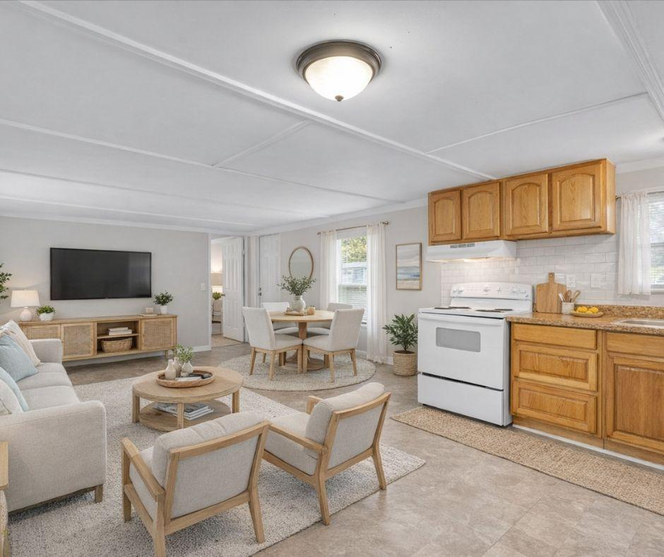 Own your own 2 bed/1 bath home with just 10% down and total payments under $1,000/month!! Make an appointment now to see this spacious, newly refurbished home with plenty of space for you and your family. Low monthly payments available. Call us to schedule your viewing of this feature-packed home in Sunny Acres Estates, a well-maintained, professionally managed manufactured home community!