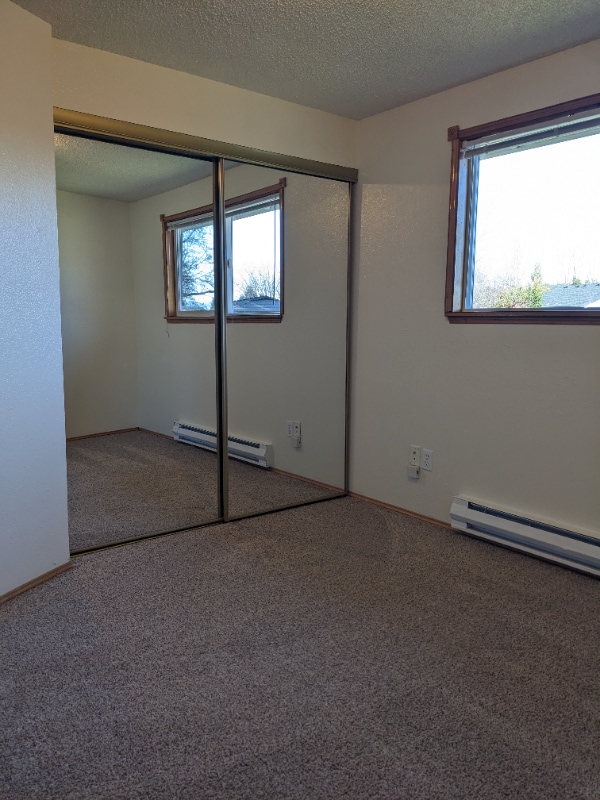 Property Id: 1558743 1250 sq. ft. Townhouse style 3 bedroom, 2 bath duplex at the end of a quiet cul-de-sac. Carpet throughout. Tile floors in bathrooms, hardwood floor in entry, dining room and kitchen. Living room has a bay window and patio French doors that lead to a large partially fenced backyard. Kitchen includes granite countertops, hardwood floor, refrigerator, self cleaning oven, dishwasher and garbage disposal. Primary bedroom has double high/low closets and attached full bath with tile floors. All bedrooms have mirrored closet doors. Attached single car garage with electric door opener. Laundry (washer and dryer) in garage. **Lawn service provided approx. 2 times per month during growing season. Month-to-month lease. $2300/month. $2000 deposit. $70 application fee per person over 18. Tenant pays for all utilities-garbage/recycle/yard waste service. $200/month water/sewer. No pets. 2 vehicle maximum. No motorhomes, RV’s, boats, etc. No smoking inside or outside of unit.
