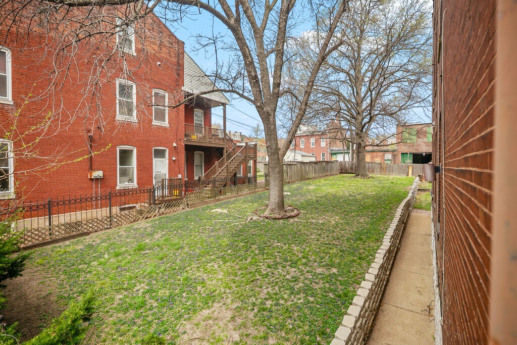 Spacious Soulard Rennovation! All new kitchen with stainless steel appliances including fridge, smooth-top convection oven, dishwasher and built in microwave. All new flooring throughout. Quartz countertops. Italian marble backsplash. Updated, bright bathroom with all new fixtures. Off street parking included. Fenced double lot (great for bbq or playing with your pup) Prime Soulard location: walk to Soulard Market & Pontiac Park, Easy highway access AT&T high speed fiber available. Washer/dryer included. Private basement storage. 4 unit building in the heart of Soulard. XL shared fenced yard. Off street parking.