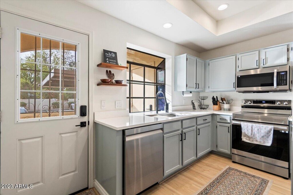 FULLY FURNISHED. Great Location just off 12th Street and Maryland close to any part of the valley. Minutes from the 51 Freeway. Ground level,Private gated entryway with a terracotta tile patio and BBQ. When you walk in you will notice luxury plank flooring throughout the home. This home has a full recent remodel. A quaint kitchen with pastel cabinets,stainless steel appliances,quartz countertops,a recessed ceiling,and a beautiful bay kitchen window. The primary bathroom includes double sinks. A comfortable home you can relax in. Covered assigned parking next to the front door. Quiet neighborhood. Non smoking. Includes all services: WiFi,Cable TV,and all utilities. ($50 cap on utilities). Low Season (May-Oct) $2295. High Season (Nov-Apr) $2495.