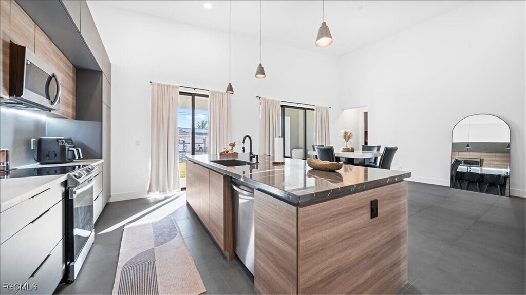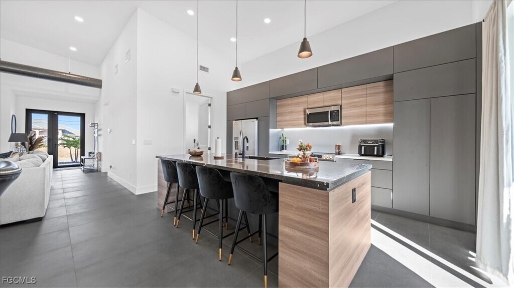 Stunning Modern Home - Not Your Typical Cookie-Cutter Design. Welcome to this beautifully designed modern masterpiece that truly stands apart from ordinary new construction. This 3-bedroom,2.5-bathroom home offers an open-concept layout with soaring 16-foot ceilings,creating a bright and airy living space perfect for both everyday living and entertaining. The heart of the home features a chef-inspired kitchen with custom marble countertops,an oversized waterfall island,and seamless flow into the main living area. Expansive sliding glass doors bring in natural light and provide effortless indoor-outdoor living,while offering plenty of space to design your dream pool. Built with quality and durability in mind,the home includes custom-made impact windows and doors,a sleek metal roof,and is connected to city water for added convenience. This is not a cookie-cutter property—every detail was thoughtfully selected to offer a unique and elevated living experience. Ideally located close to major shopping centers,top restaurants,and everyday essentials,this home delivers the perfect balance of modern luxury and prime location. Schedule your private showing today.