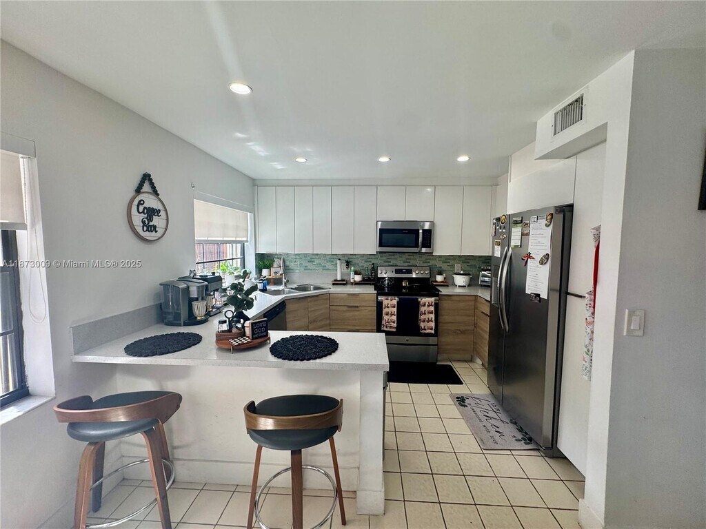 Beautiful and spacious townhome in Valencia at Kendall, featuring a patio larger than average, remodeled bathrooms and kitchens, accordion shutters on all windows, and a master bedroom with a walk-in closet. The community offers green areas, pool, and a quiet, clean, gated community.