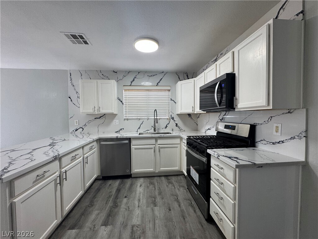 Convenient and desirable location, minutes to shopping, dining, freeway access. Newly remodeled single story, 3 beds, 2 baths, 2 garages. Upgraded kitchen with wide island. Beautiful quartz countertops, up to ceiling quartz backsplash wall. Stainless-steel kitchen appliances. Luxury vinyl plank flooring throughout. Covered backyard with beautiful pavers and green turf. MOVE IN READY.