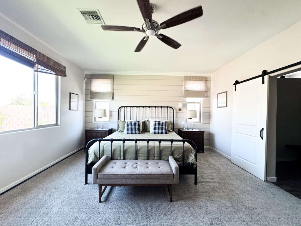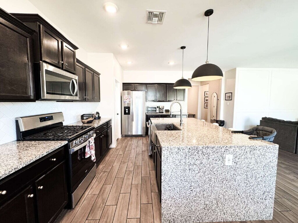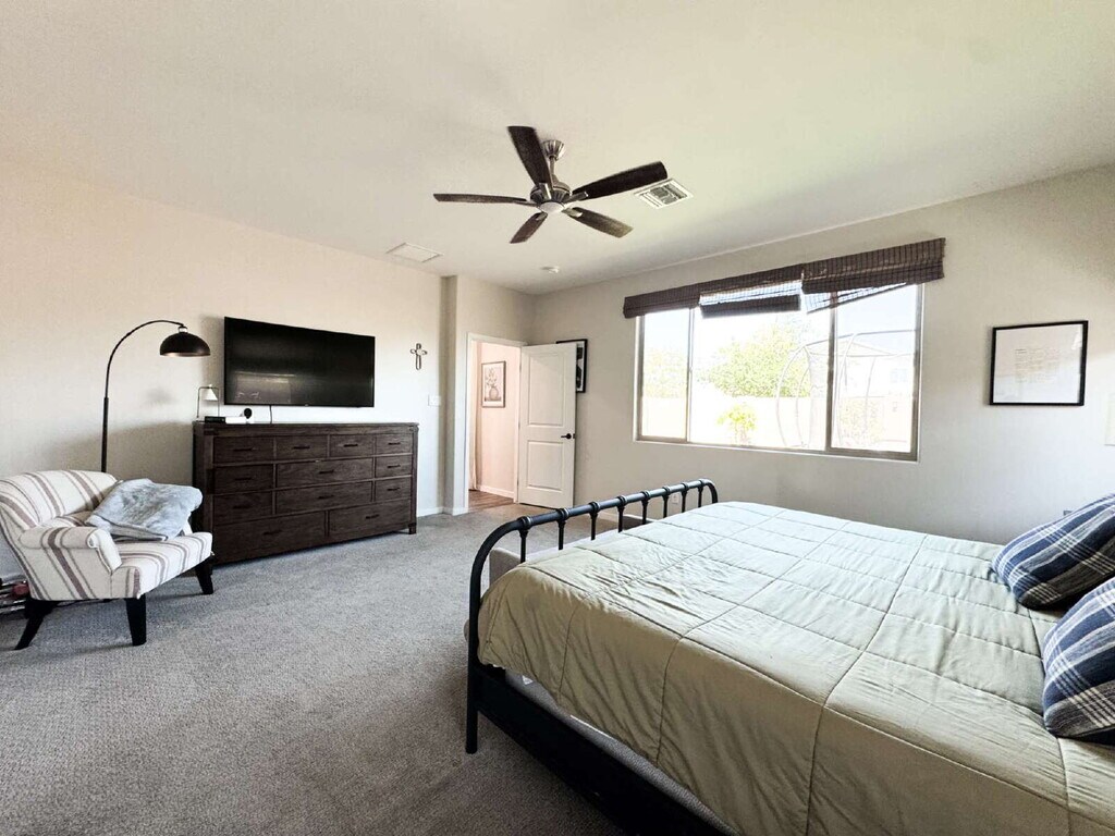 Located at 10179 Orion Avenue in Yuma, AZ, this 2,365 sq ft home offers a functional and well-designed living space. The property includes four bedrooms and two full bathrooms, along with an additional half bath, providing adequate accommodation for residents and guests. The layout supports a practical flow between common areas, suitable for everyday living and gatherings. The kitchen features a granite waterfall island and serves as a central area of the home. The primary bathroom includes a walk-in shower and a walk-in closet. The home is designed with energy efficiency in mind. The backyard includes a cement patio and artificial grass, offering a low-maintenance outdoor space. The property is located near Mesa Del Sol Golf Course and the Fortuna Foothills area, with access to nearby amenities and services. Property Features: • 4 bedrooms / 2.5 bathrooms • Over 2,300 sq. ft. • Ample kitchen cabinets • Stainless Appliances • Granite Waterfall Kitchen Island • Kitchen Pantry • Primary Bathroom w/ walk-in closet and shower • Tiled Flooring • Spacious Laundry Room w/ Washer and Dryer • Sliding Glass Door to the Backyard • Covered Cemented Patio • 2 Car Garage ONLY • Turf Backyard • Fenced Yard for privacy • Solar System Services included
