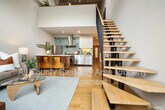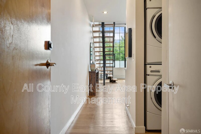 Experience distinctive industrial charm in this stunning loft featuring soaring 15-foot ceilings, radiant heated wood floors on the main level, and expansive windows that flood the space with natural light, creating an airy and inviting ambiance. The open-concept design seamlessly connects the living, dining, and kitchen areas—perfect for both everyday living and entertaining. The modern kitchen is equipped with stainless steel appliances, including a premium Wolf range, sleek stainless steel lower cabinetry, and a functional island with additional storage. A full bathroom on the main level offers a walk-in glass shower and a freestanding clawfoot bathtub for a spa-like retreat. Upstairs, the lofted bedroom overlooks the living area and features an opening skylight and built-in storage, blending comfort with practicality. Additional highlights include in-unit laundry, and parking is included for 1 car. Ideally located just moments from Lake Merritt, this home provides easy access to Lake Merritt BART Station and major freeways (I-880 and I-980), making commuting to downtown Oakland and San Francisco effortless. Enjoy nearby attractions such as the Lake Merritt Amphitheater, Oakland Museum of California, and a vibrant local dining scene. This exceptional loft perfectly combines urban energy, character, and modern comfort.