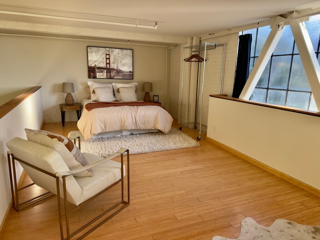 Welcome to Lake Merrit’s Desirable East Lake Loft, a spacious bi-level corner unit located in the vibrant city of Oakland!. This condo offers a unique blend of comfort and convenience with its bi-level one-bedroom, one-bathroom layout w/polished concrete floors downstairs and wood floors upstairs. The unit is equipped with in-unit washer/dryer, providing the ease of doing laundry within the comfort of your own home. The kitchen is outfitted with a dishwasher and modern appliances perfect for the at home chef. The loft space adds an extra dimension to the unit, offering a versatile area that can be tailored to your lifestyle. The building also features an elevator, ensuring easy access to your unit. Experience the best of Oakland living in this well-appointed condo. Walk to Lake Merritt, Laney College, Grand/Lakeshore shopping, Oakland Museum, and public transportation with a walk score of 90 and bike score of 98! Quiet and secure building with gated 1-car parking, dishwasher, and laundry in unit! Large, operable freight doors allow elevated access to quiet 4th ave. Eli Meyskens Realtor / Leasing / Relocation mobile AMSI Foundation DRE # 01902318