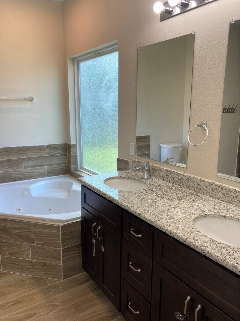 Gently lived in,newer 3/2/2 home. Great location with easy access to I-45 and downtown. Features spacious living room with fireplace,open to kitchen and breakfast room,breakfast bar,granite counter tops,primary with dual sinks,jetted tub and separate shower. Garage door opener,covered back patio,fenced backyard. MLS# 33342219