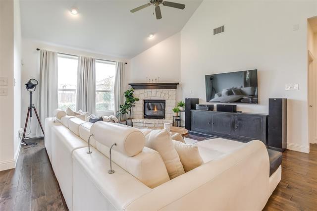 Welcome to 1018 Hoxton Ln, a beautifully designed 4-bedroom, 3-bath home built in 2016, offering both modern comfort and timeless style. As you step inside, you’re greeted by hardwood floors in the main living areas, elegant plantation shutters, and decorative lighting that set the tone for the home’s warm, inviting feel. The open floor plan flows seamlessly from the family room, anchored by a cozy stone fireplace, into the chef’s kitchen with stainless steel appliances, granite countertops, and abundant cabinetry. The perfect setting for entertaining or everyday living. The primary suite is conveniently located on the first floor, offering a private retreat with a spa inspired ensuite featuring a double vanity and walk in closet. A secondary bedroom and dedicated office are also located downstairs, ideal for guests, a nursery, or working from home. Upstairs, you’ll find a versatile game or media room along with two additional bedrooms, each with its own walk in closet for plenty of storage. Step outside to the private backyard oasis, complete with a covered patio and privacy fence. It's ideal for BBQs, gatherings, or simply relaxing after a long day. Located in a desirable Forney community, this home blends functionality, comfort, and style that is truly move in ready!