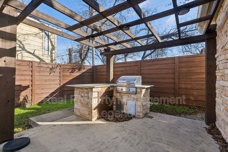 Nestled in the desirable Sunset Hills of Oak Cliff, this modern gem blends timeless design with luxurious finishes. Flooded with natural light, the open concept layout features soaring ceilings and white oak hardwood floors throughout. The gourmet chef's kitchen is a true standout with a Jenn-Air range and fridge, flush inset cabinetry, soft-close drawers and doors, a sprawling island with abundant storage, a wine fridge, and a separate pantry, The primary suite is complete with custom closets and a spa-like retreat featuring a deep soaker tub, step-in shower, and dual sinks. The two secondary bedrooms offer walk-in closets with storage systems and share a beautifully appointed Jack-and-Jill bathroom. Outside, an entertainer's dream awaits with an oversized deck, outdoor kitchen with granite counters, and a lush grassy area. The two-car garage, with a sleek glass door, offers ample space for storage, a man cave, or she-shed dreams. The mudroom and utility area add extra convenience. With an electric gate for privacy and security, this meticulously maintained home offers the perfect blend of style, function, and modern luxury. Located just minutes from the vibrant Bishop Arts District, Downtown Dallas, and Trinity Groves, this home is ideally positioned for both relaxation and easy access to local amenities. Replace your cash security deposit with smart, affordable security deposit insurance through Rhino! Virtual Tour: Professionally managed by Real Property Management Legend. AVOID SCAMS! We do not post on Craigslist. Amenities: open concept layout and oak hardwood floors, gourmet chef's kitchen with a jenn-air range & fridge, dual sinks and step-in shower in primary bedroom, oversized deck and outdoor kitchen with granite countertops, recently renovated with an electric gate
